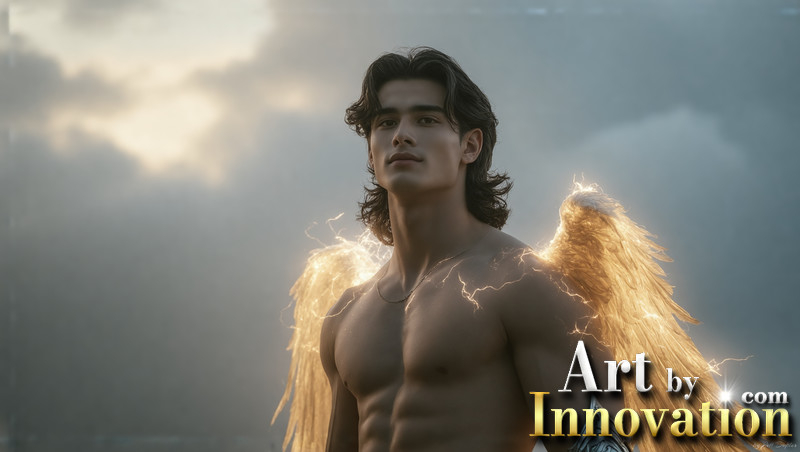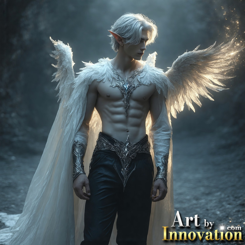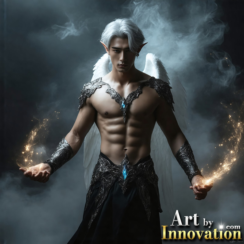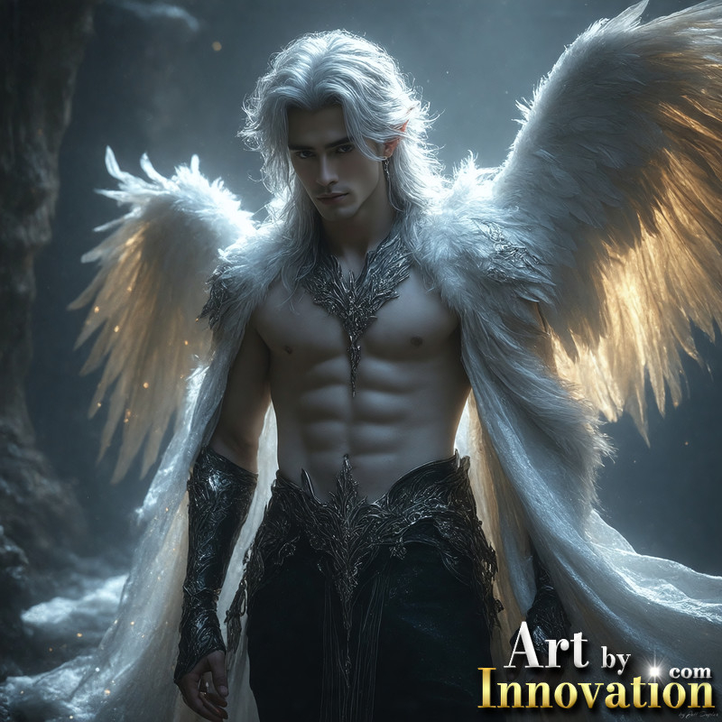 Male Angels from Above,handsome & sexy men,fantasy wings,brought to life through the magic of AI