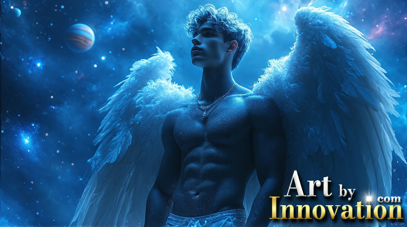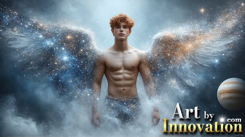 Male Angels from Above,handsome & sexy men,fantasy wings,brought to life through the magic of AI
