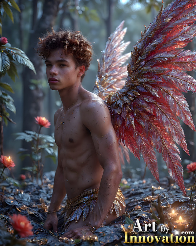 Holy Male Angels of the Elements,with Vibrant Wings