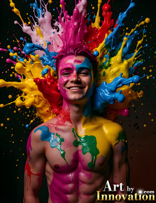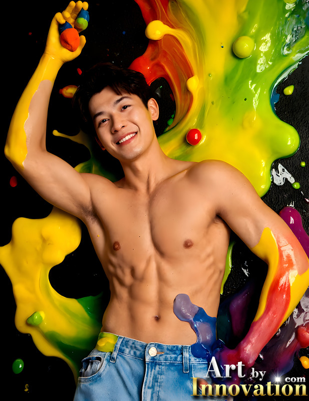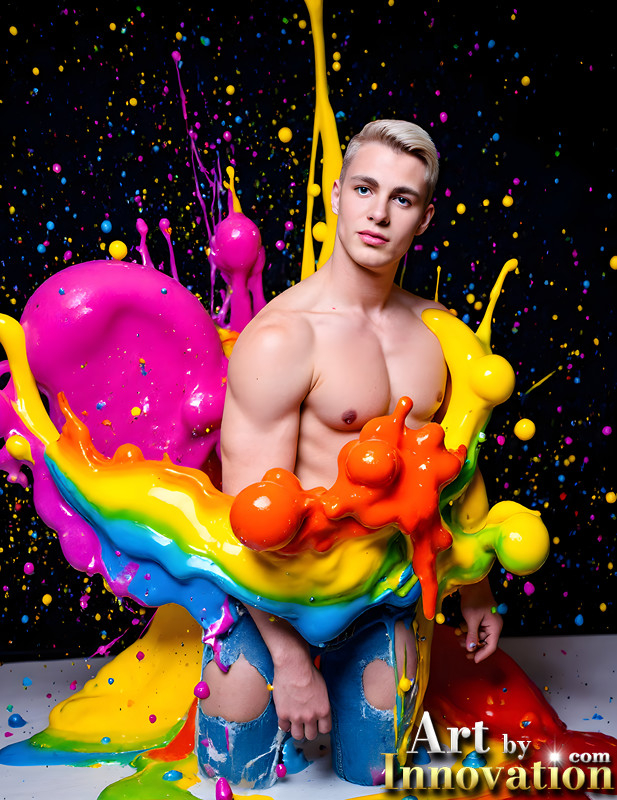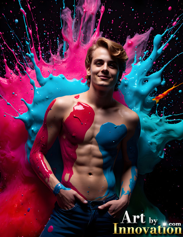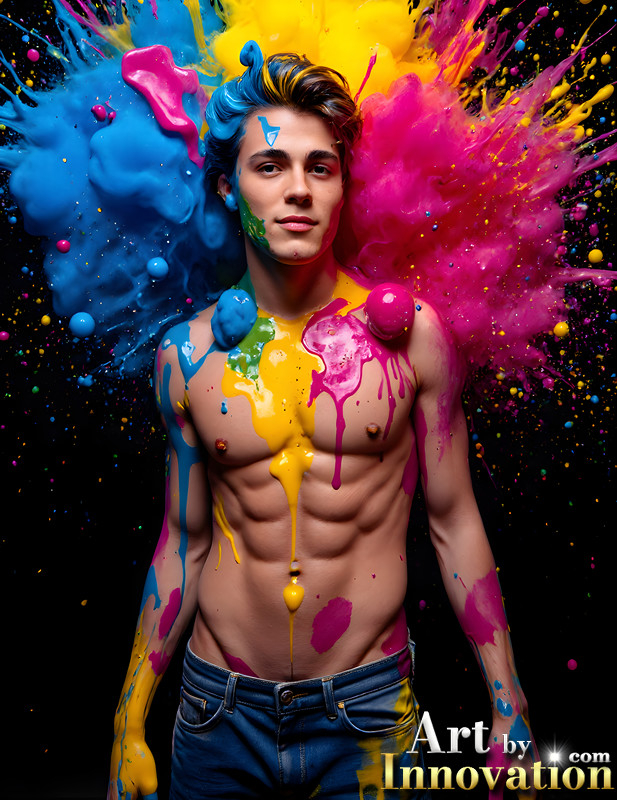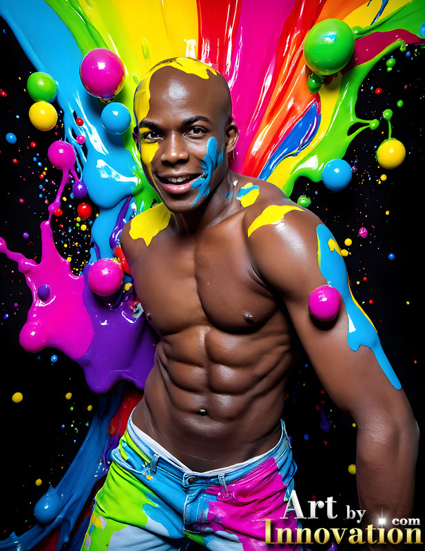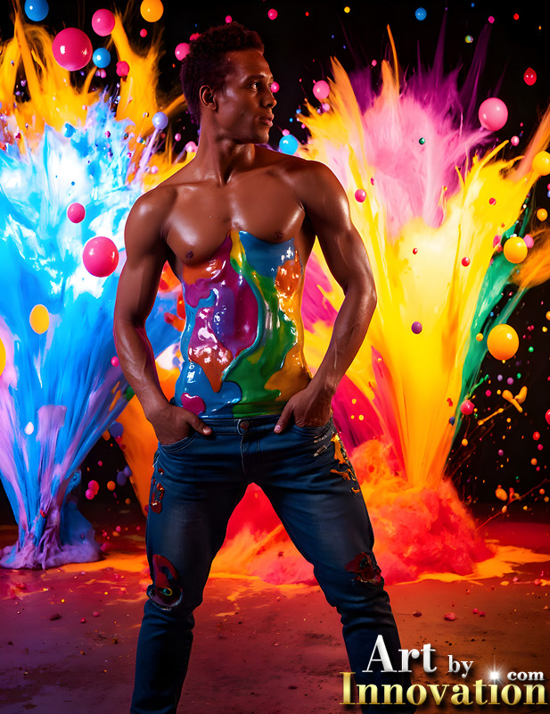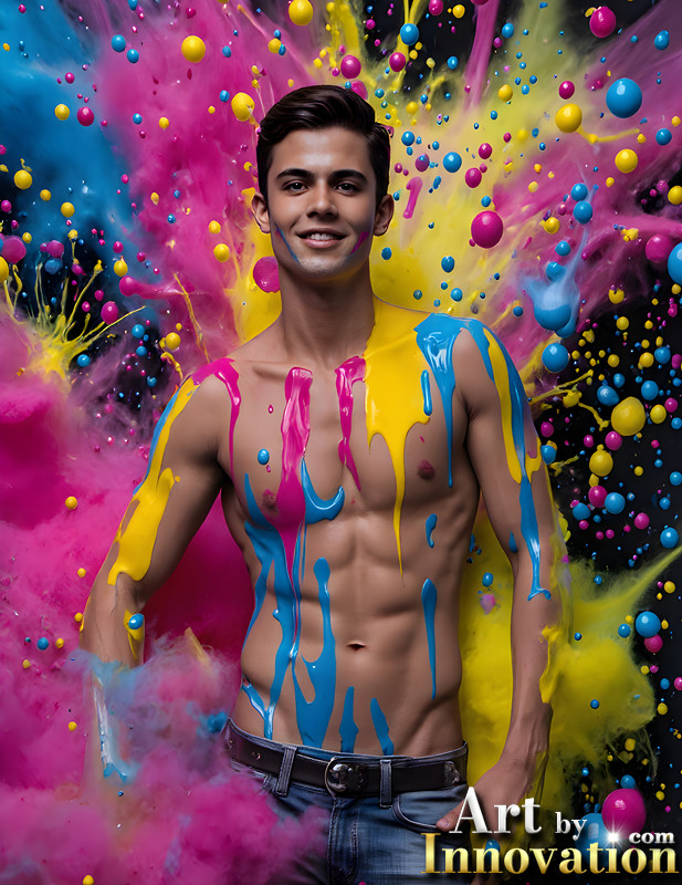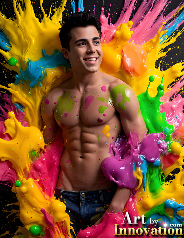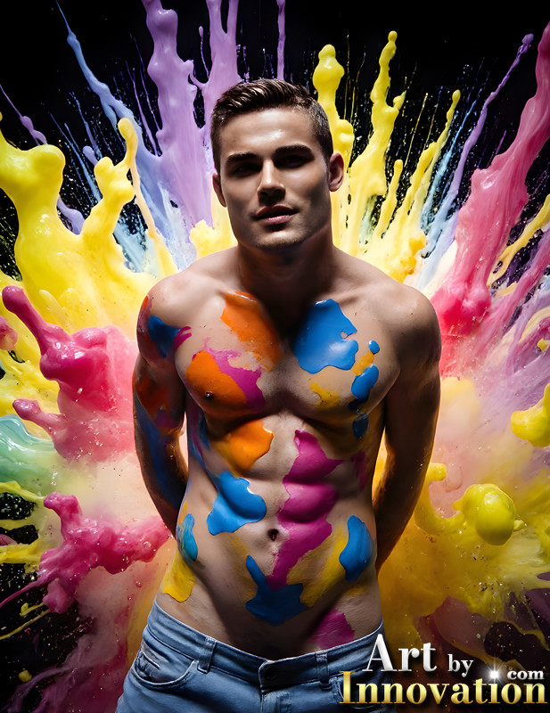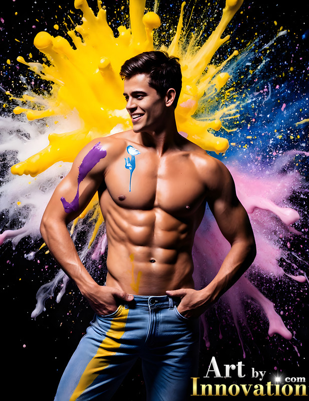 Paint Splat Fun - AI Photos of Hot men having fun with body paint.