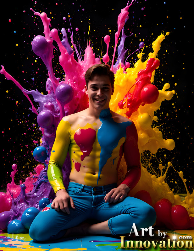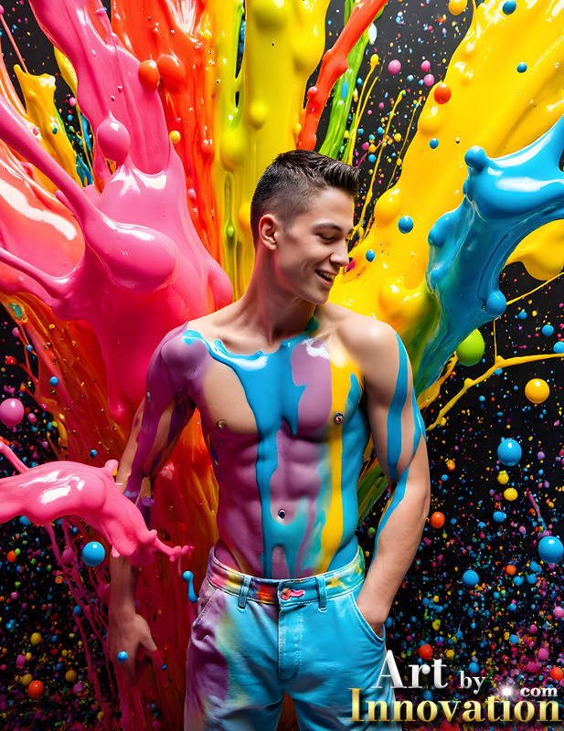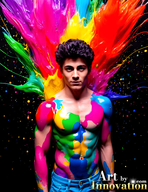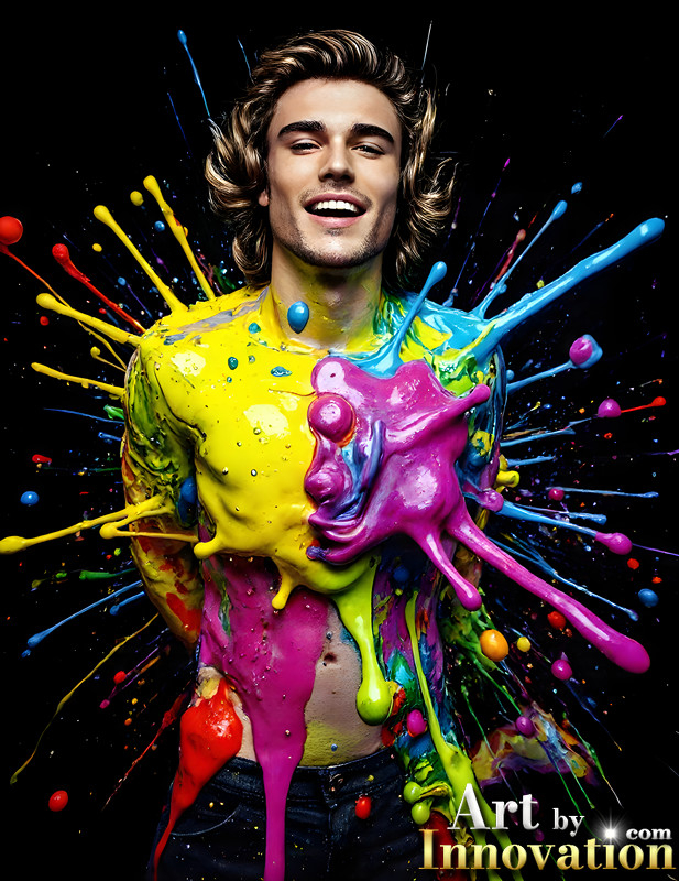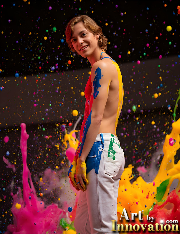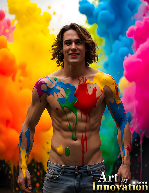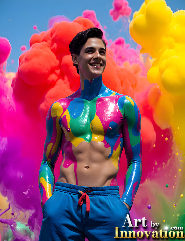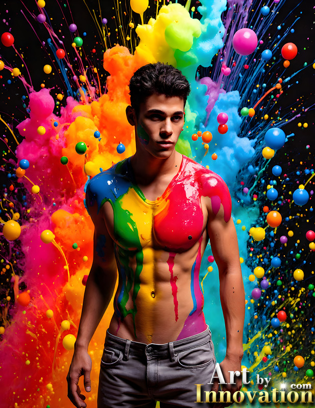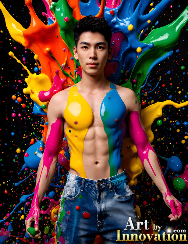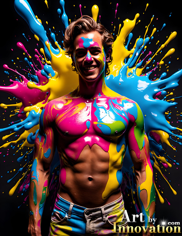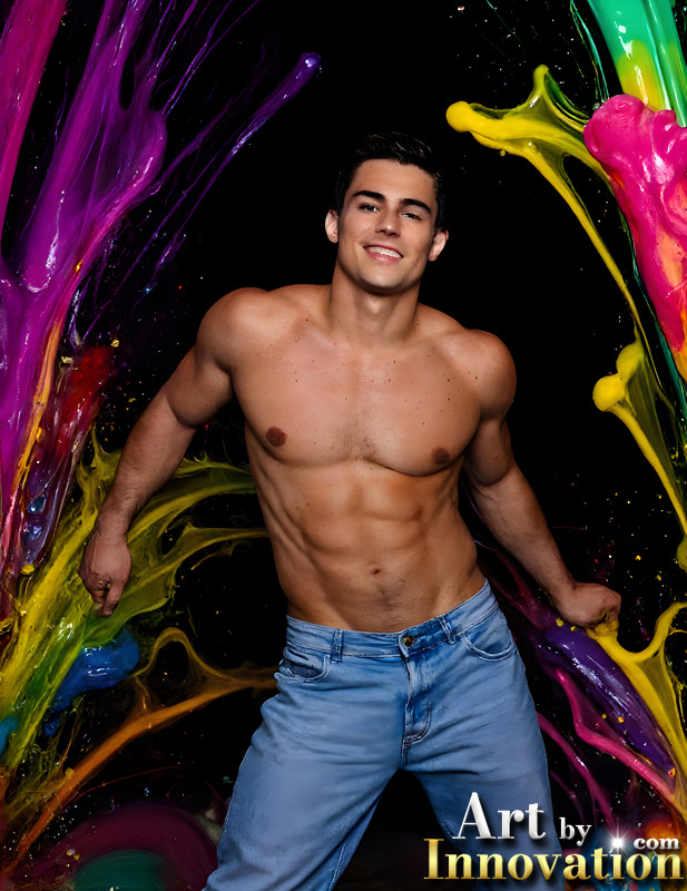 Paint Splat Fun - AI Photos of Hot men having fun with body paint.