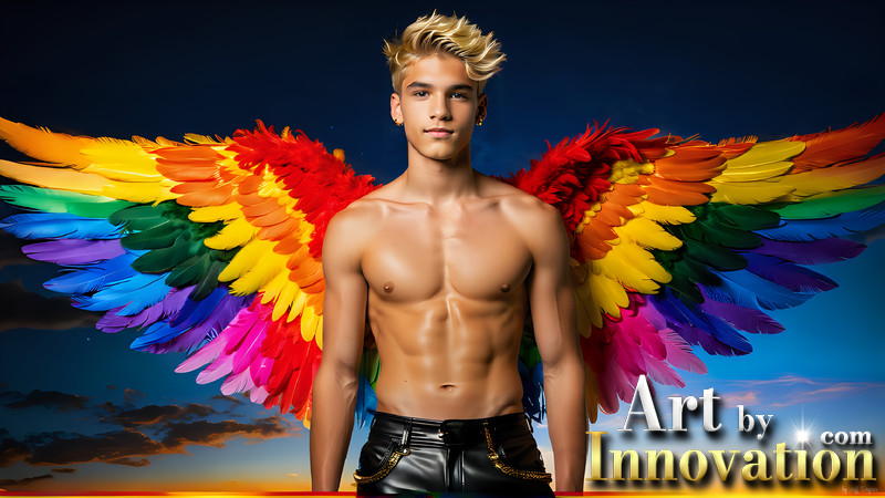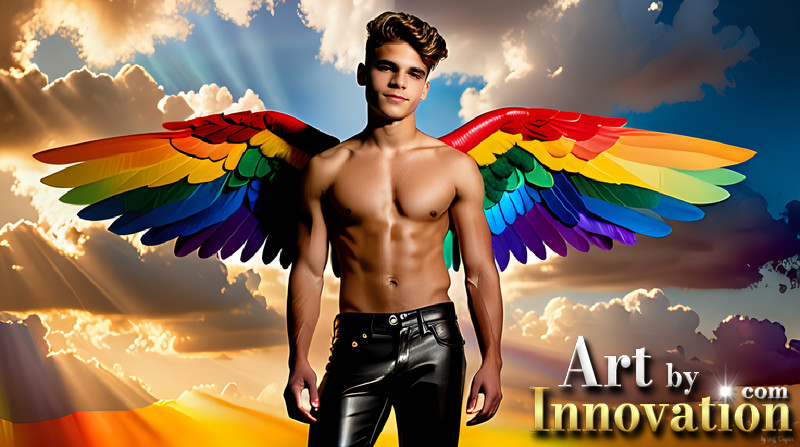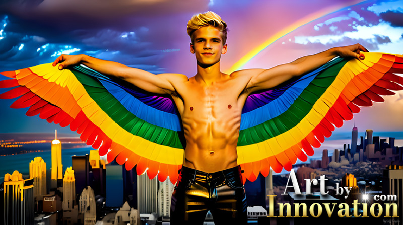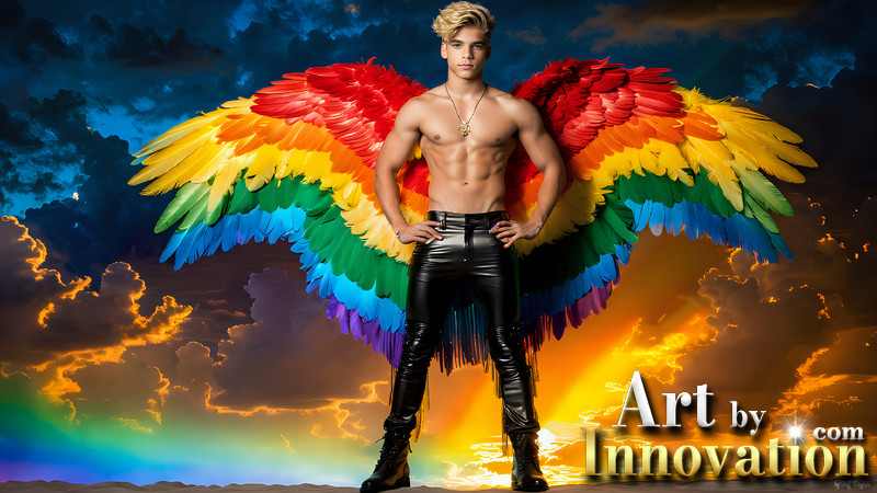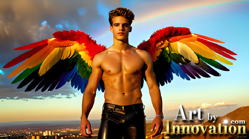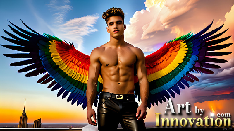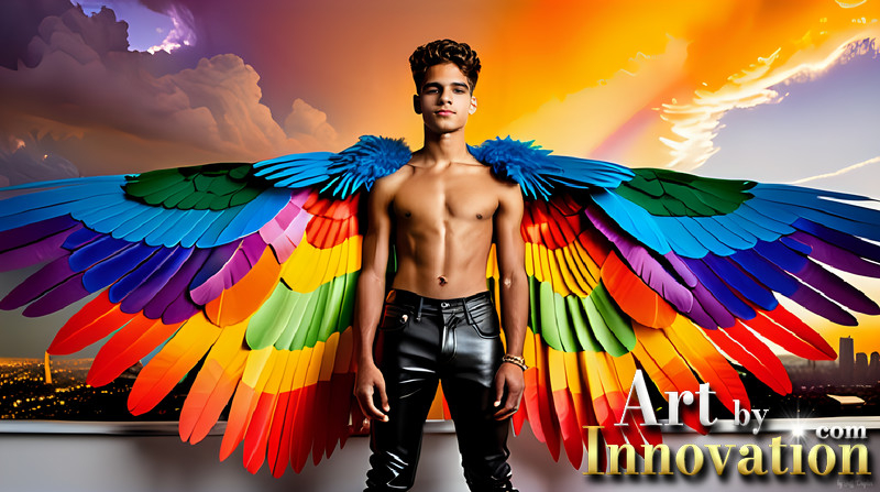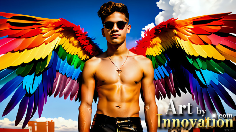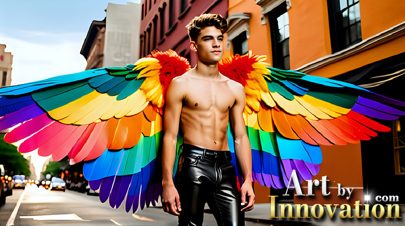 Gay Men Wearing Feathered wings of Pride