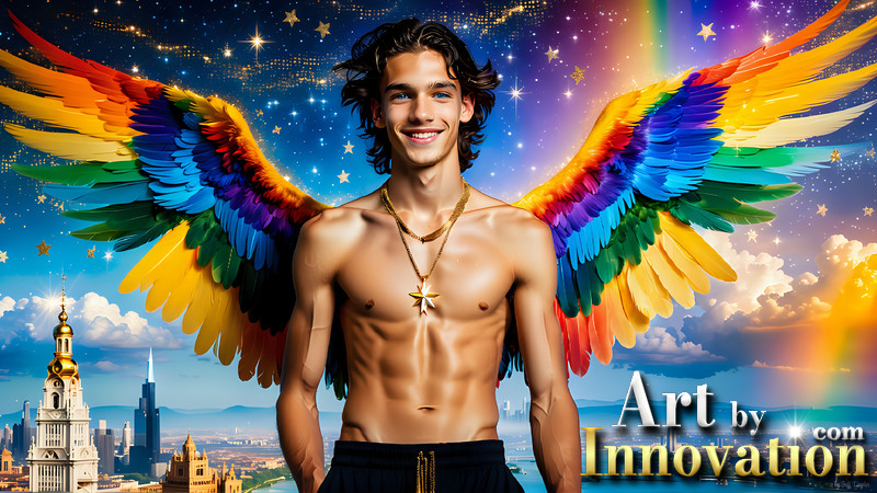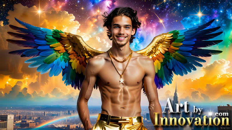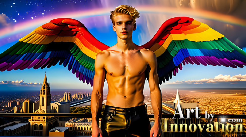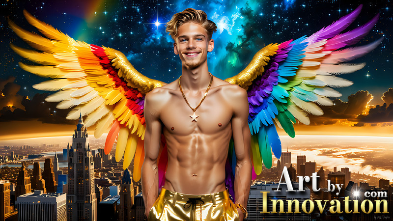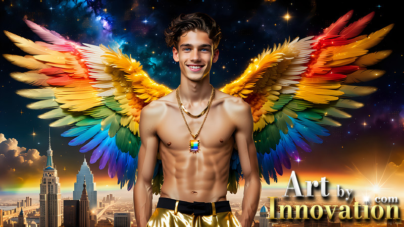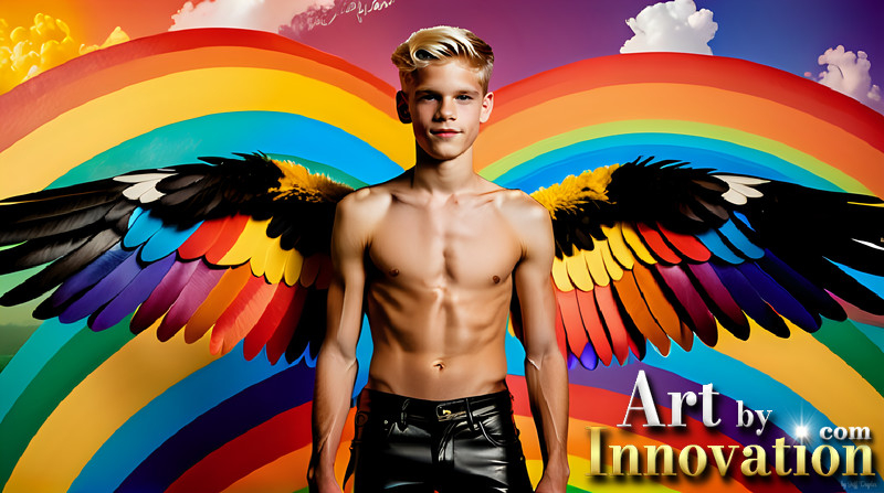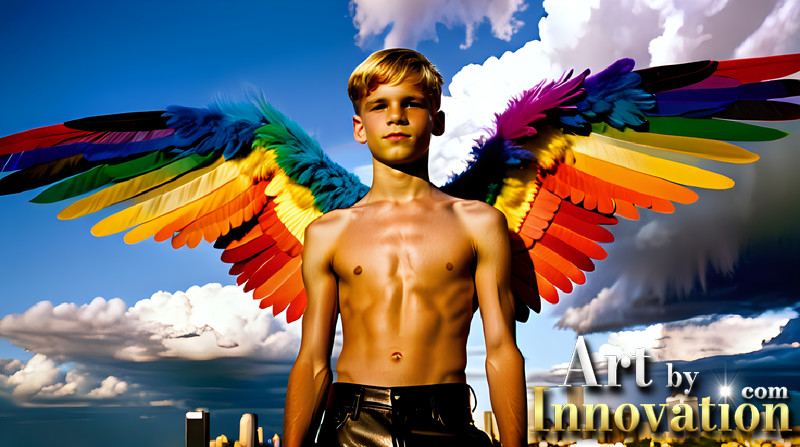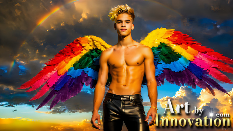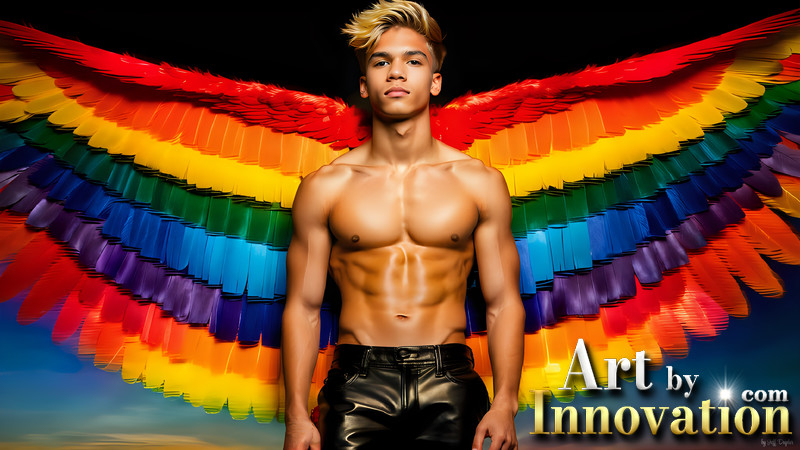 Gay Men Wearing Feathered wings of Pride
