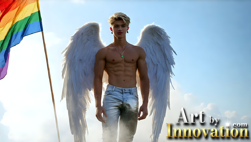 Gay Men Wearing Feathered wings of Pride