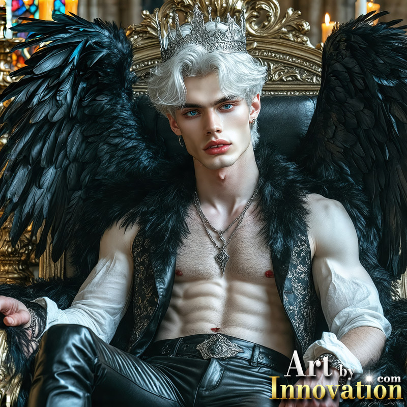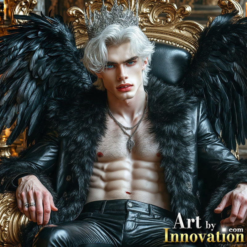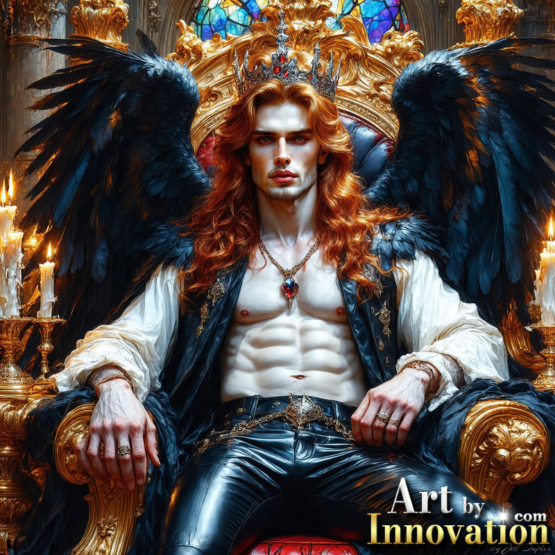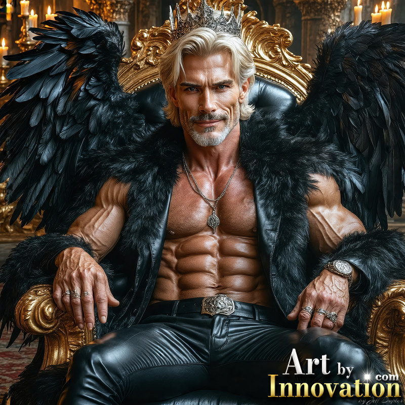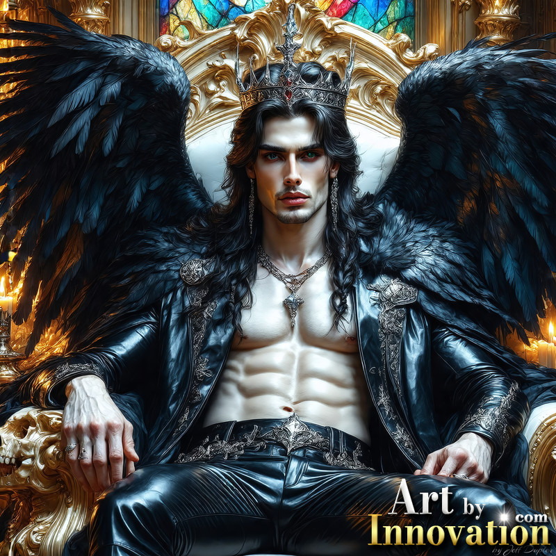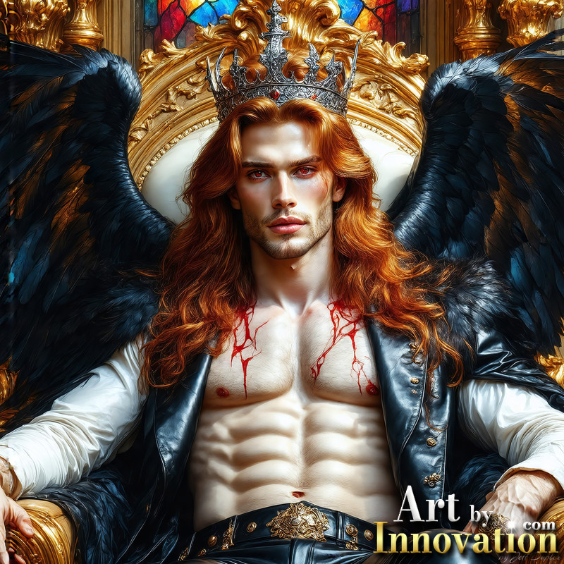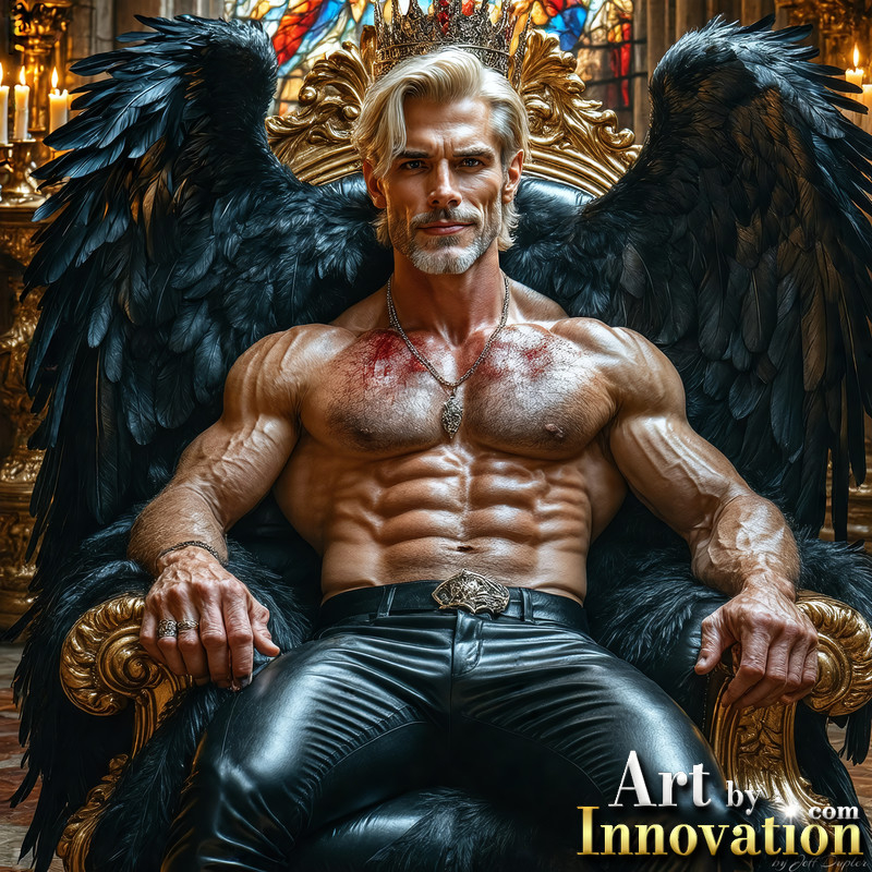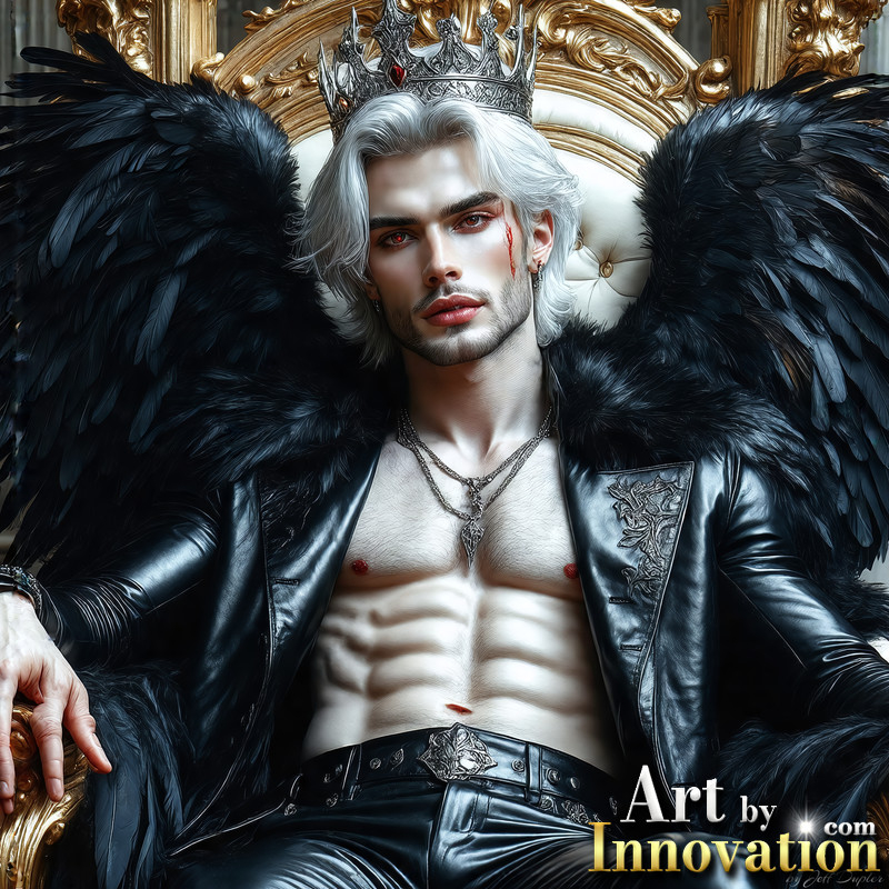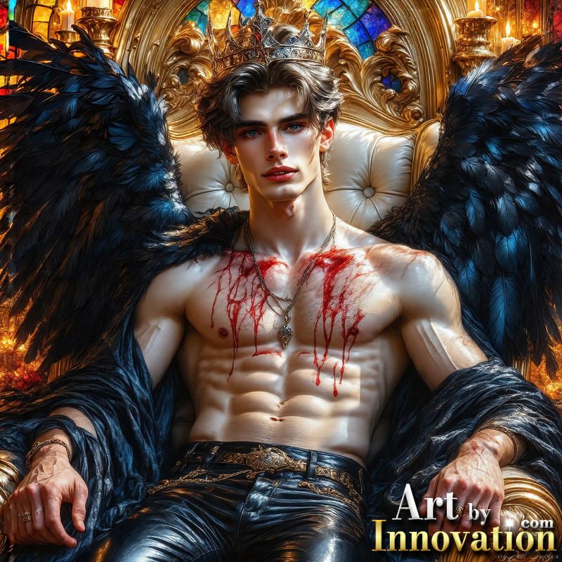 A shirtless vampire male sitting on his Throne.