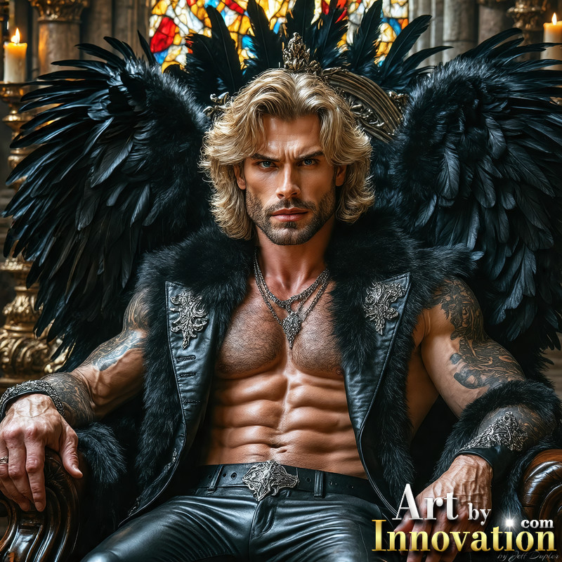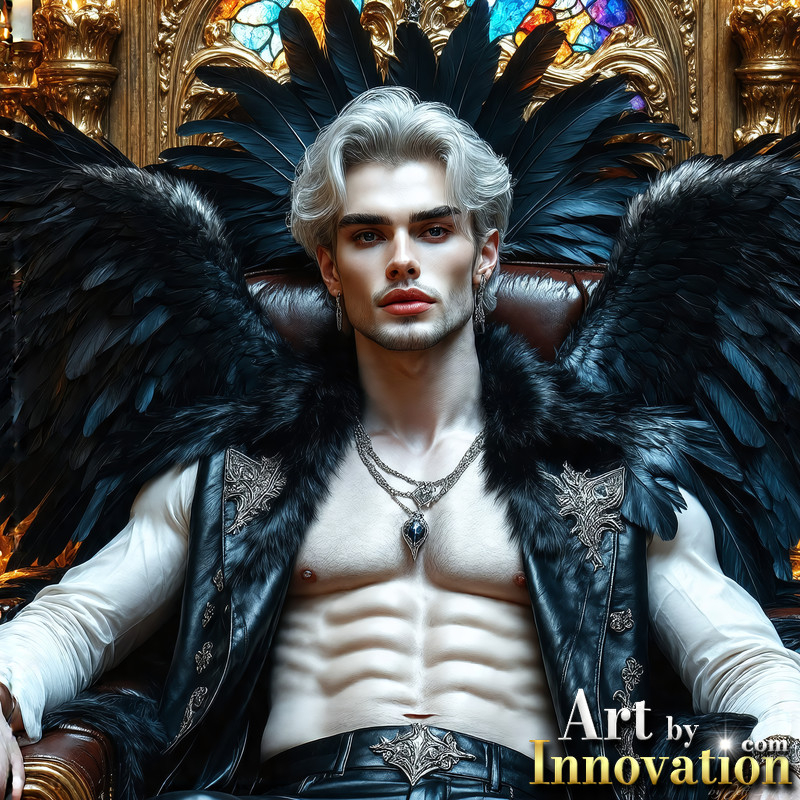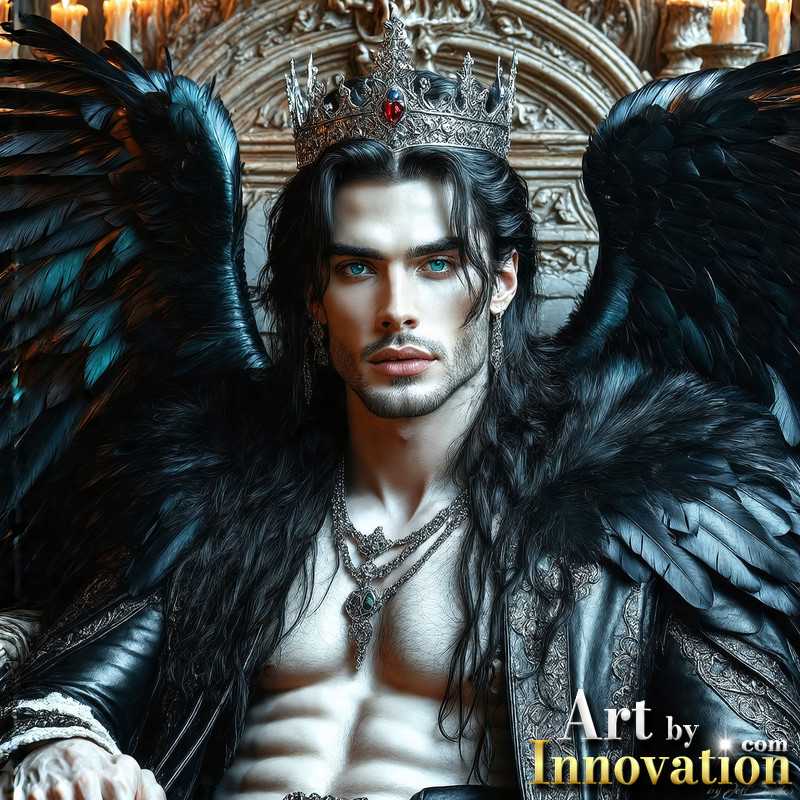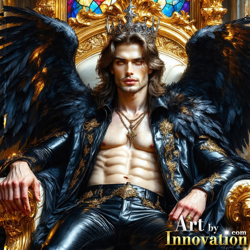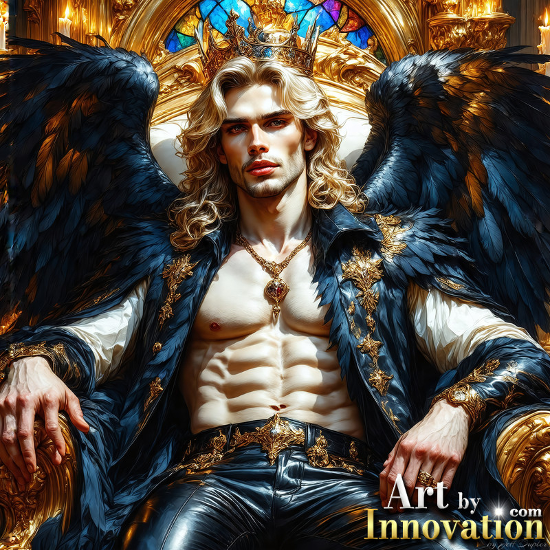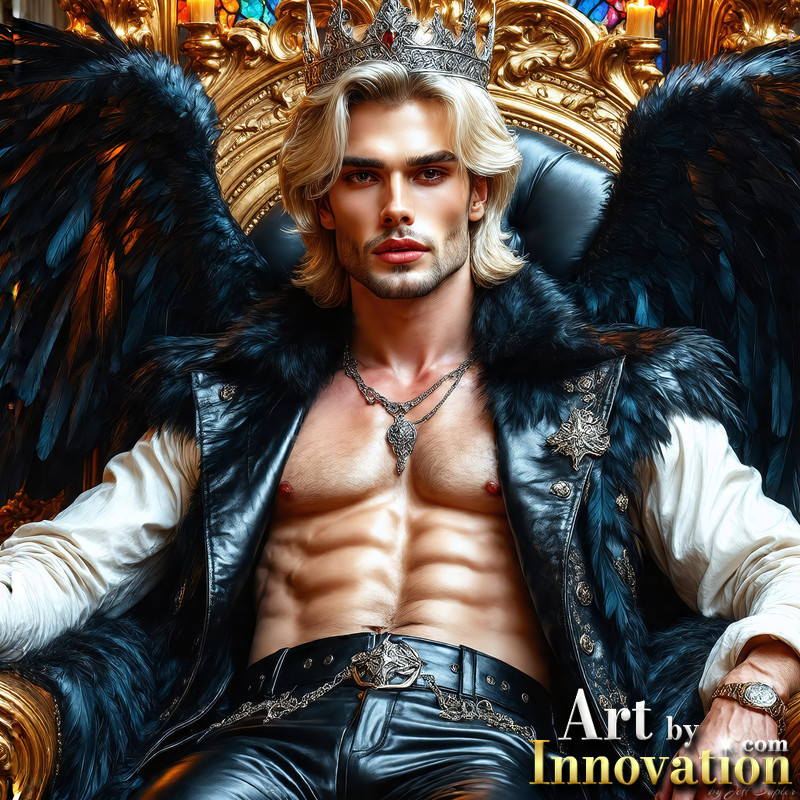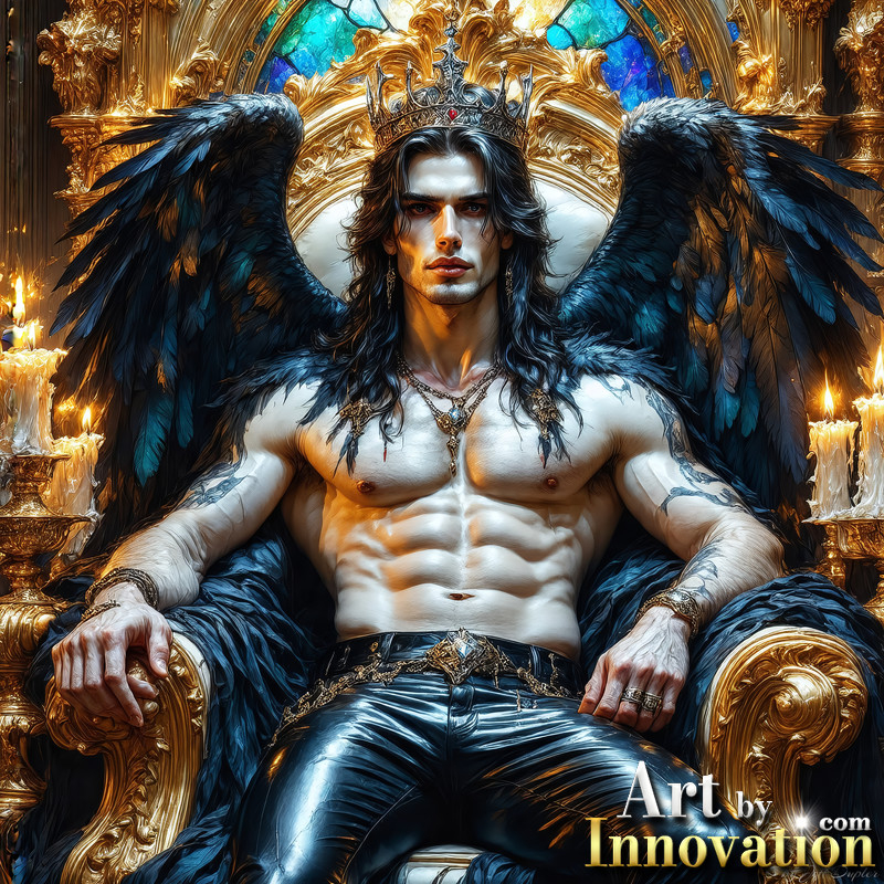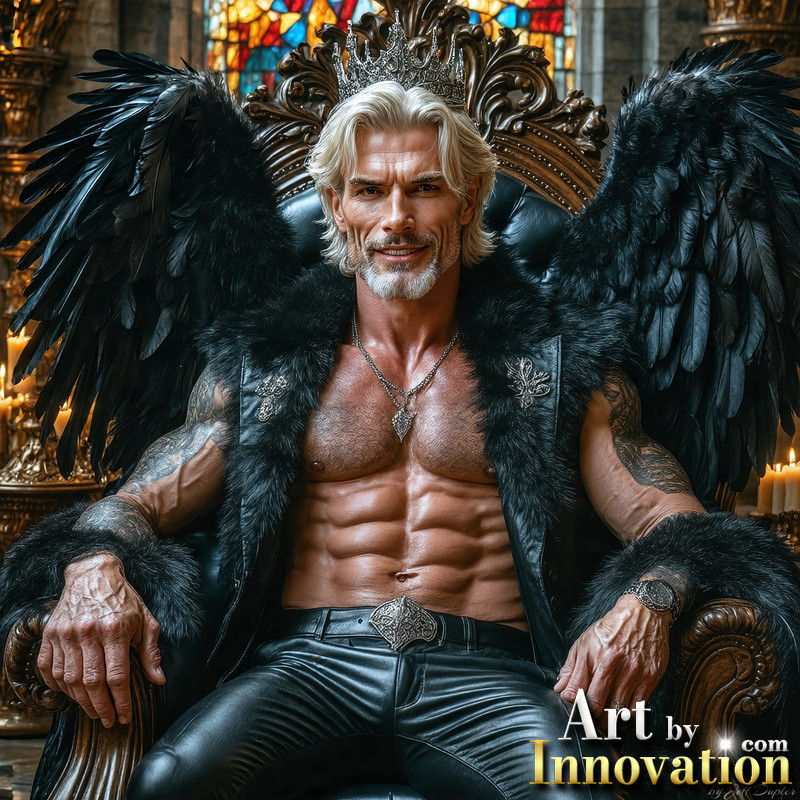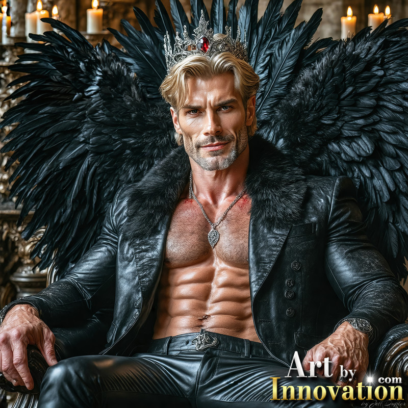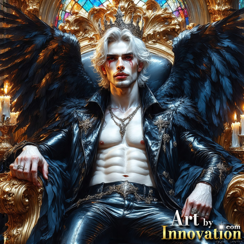A shirtless vampire male sitting on his Throne.