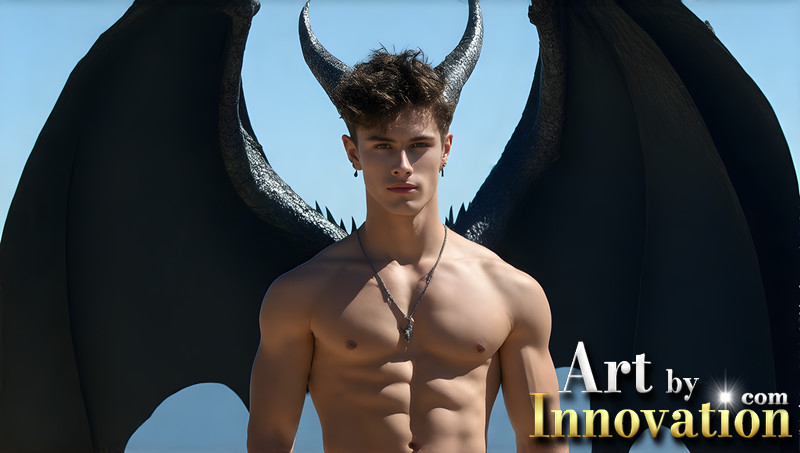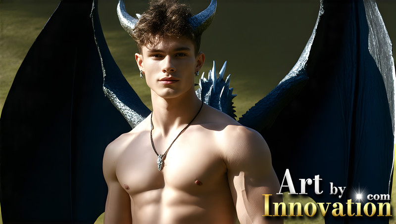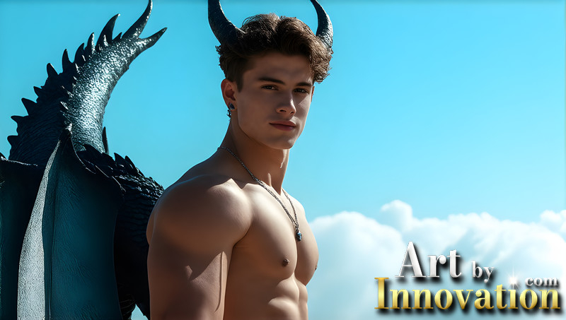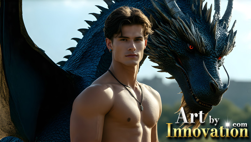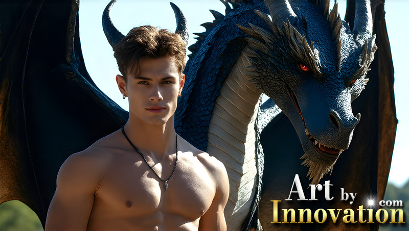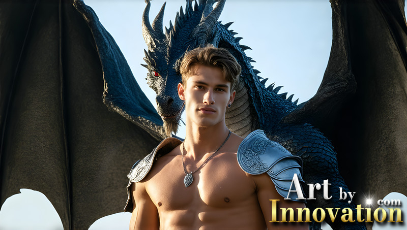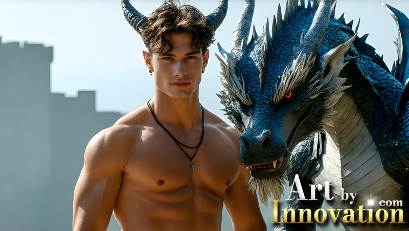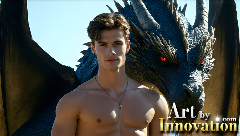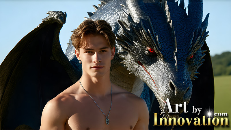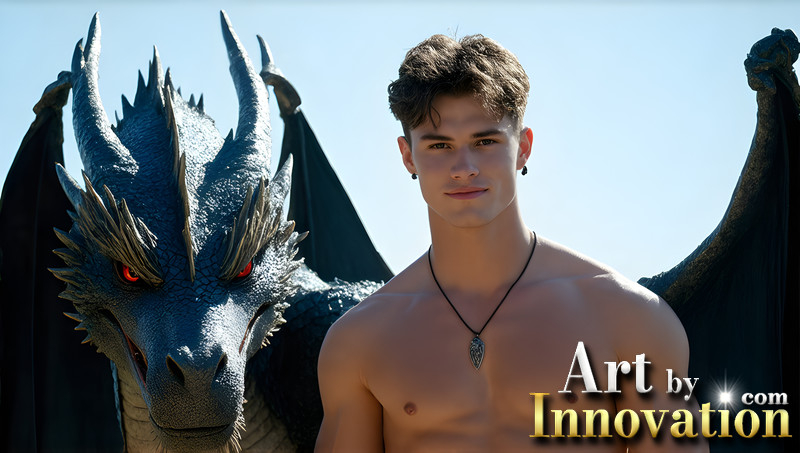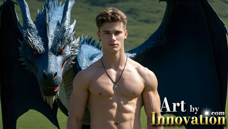 The Dragon Prince - A very attractive shirtless young male prince,with his dragon.