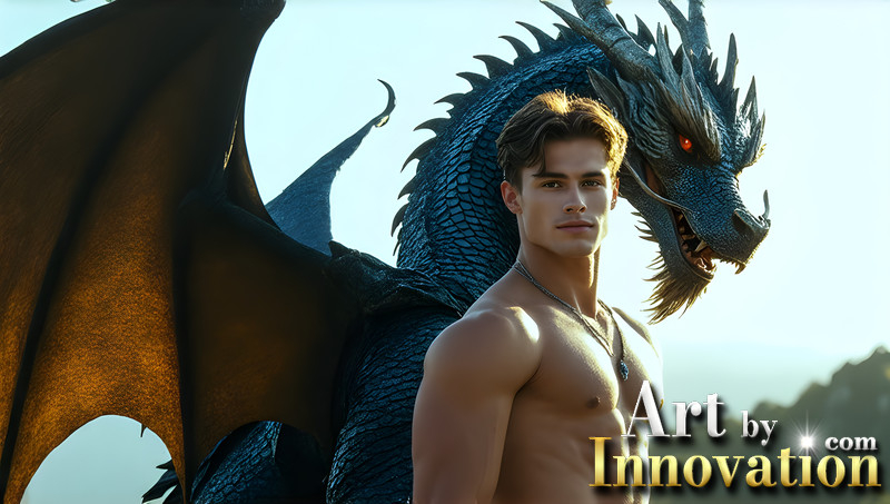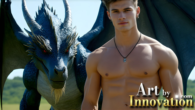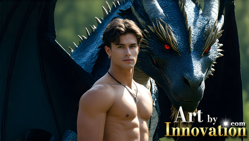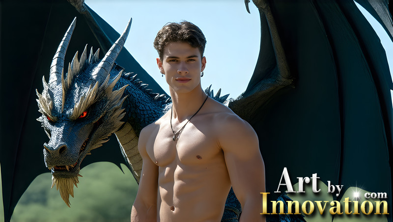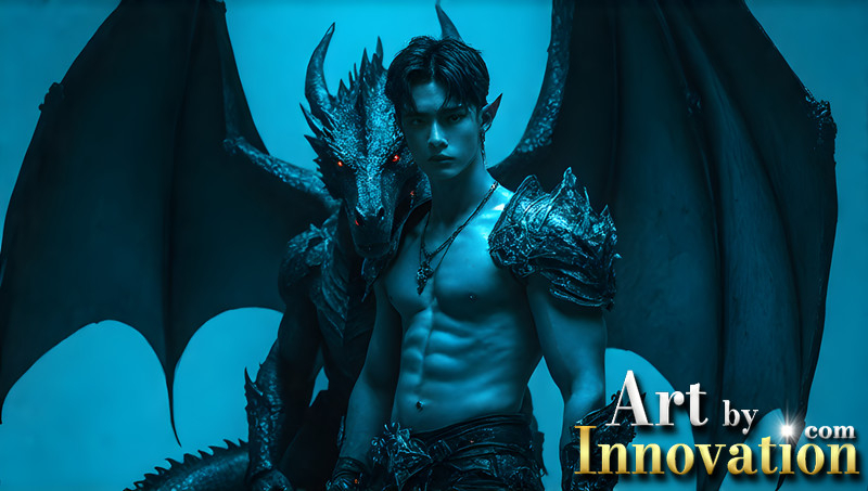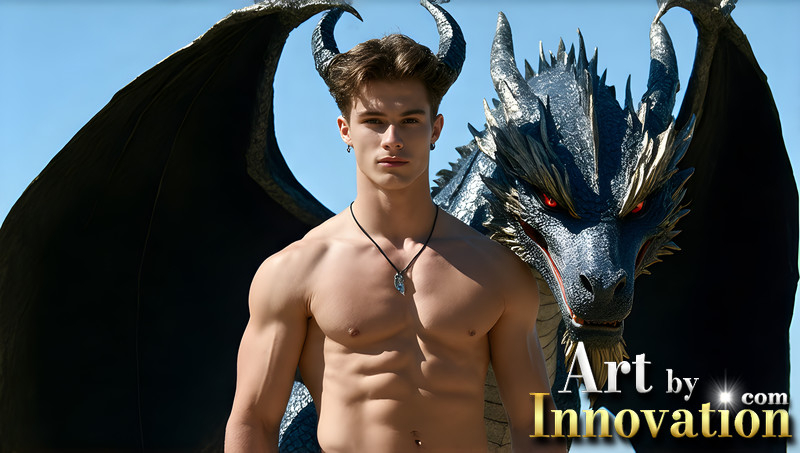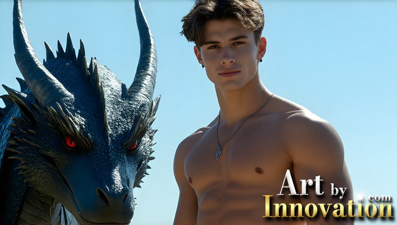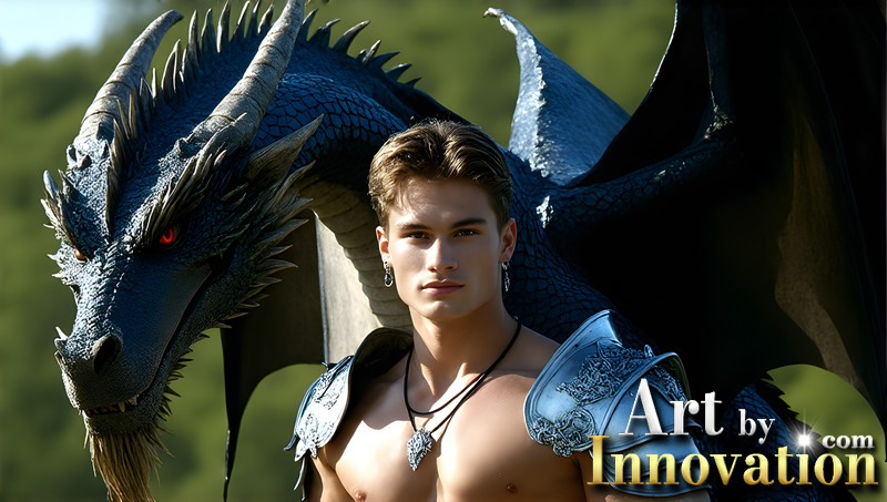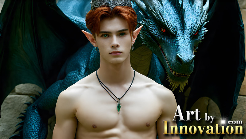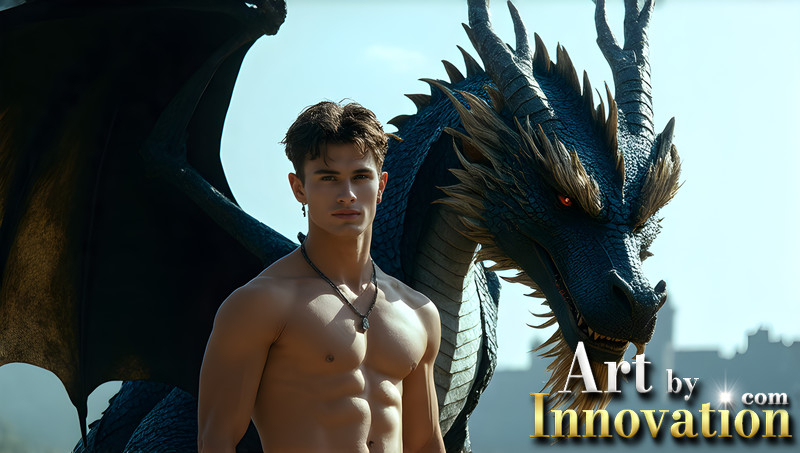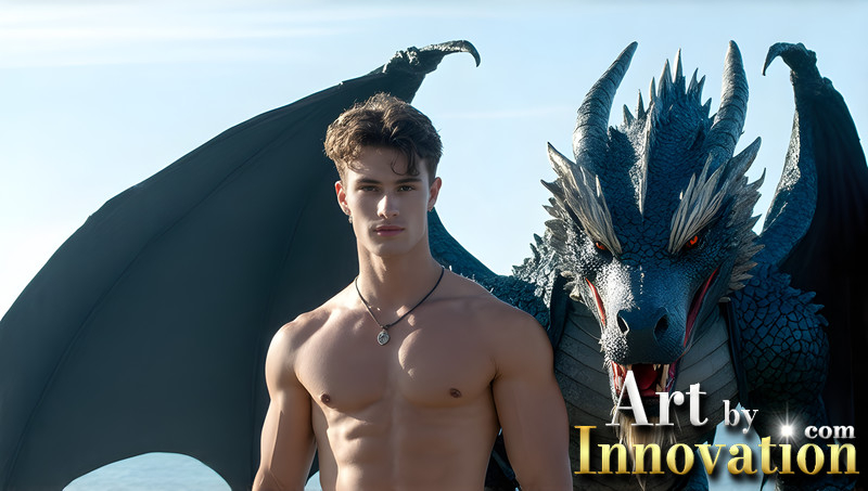 The Dragon Prince - A very attractive shirtless young male prince,with his dragon.