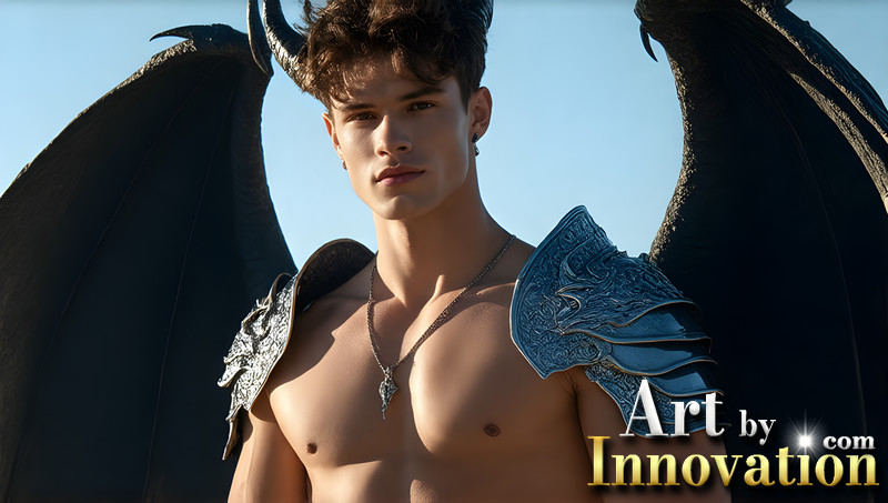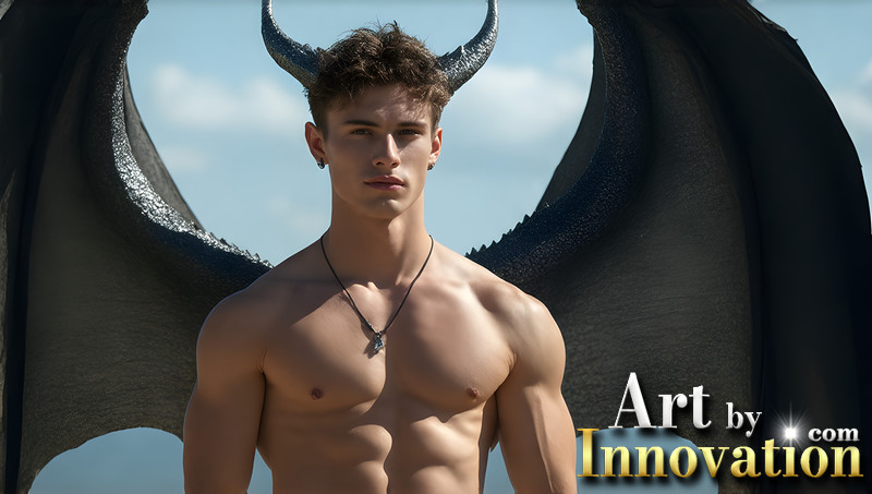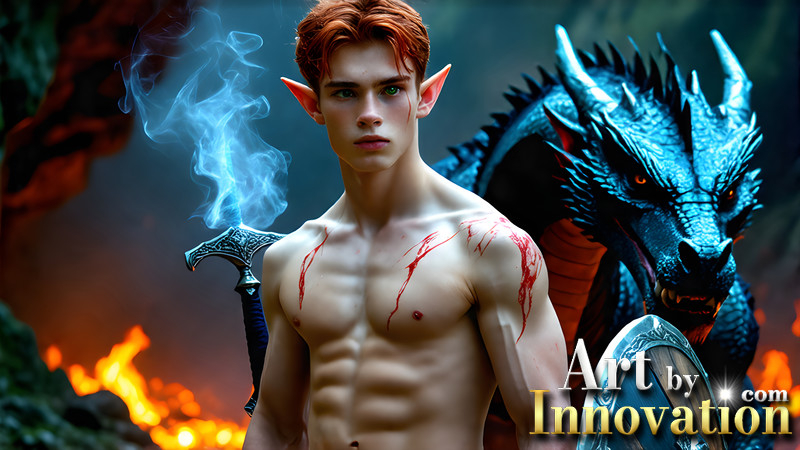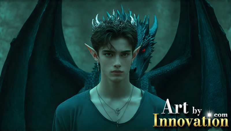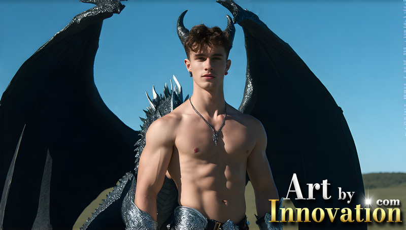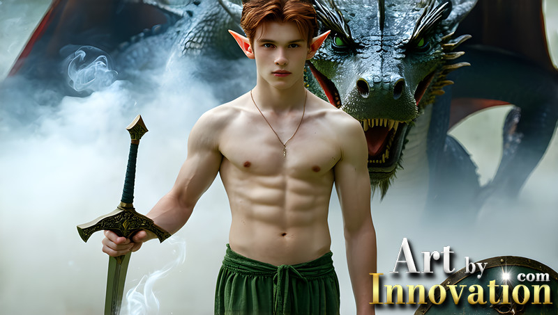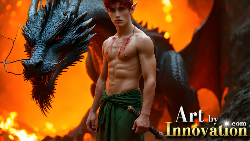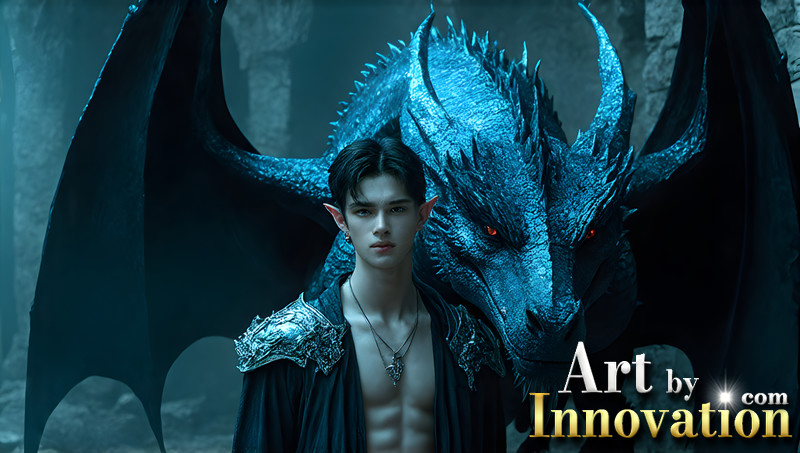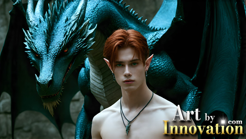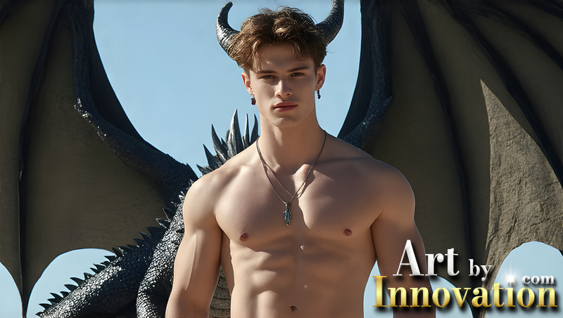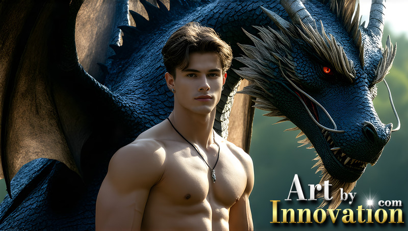 The Dragon Prince - A very attractive shirtless young male prince,with his dragon.