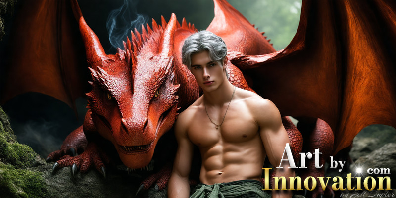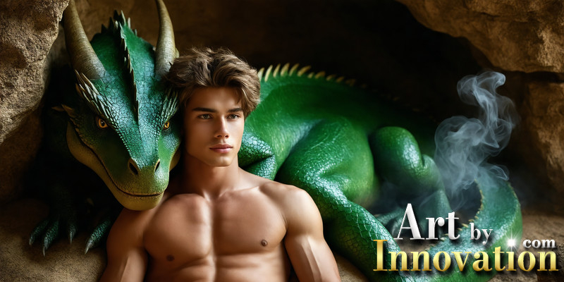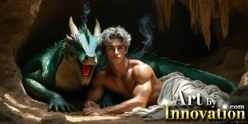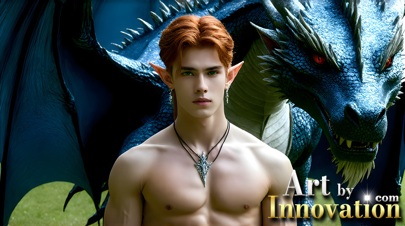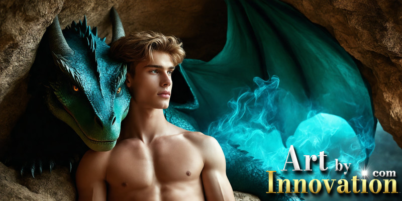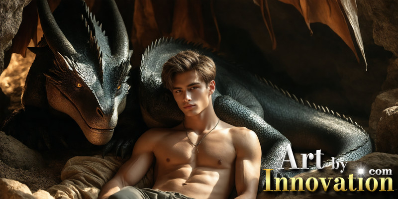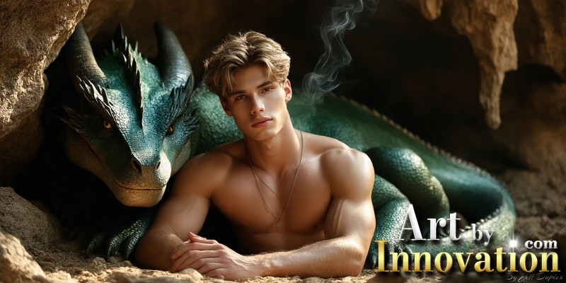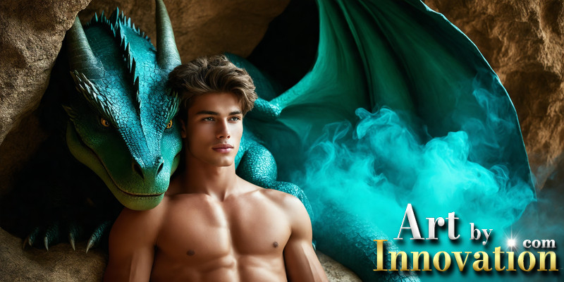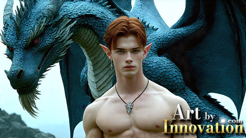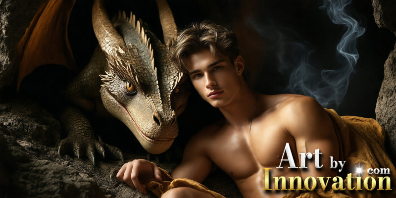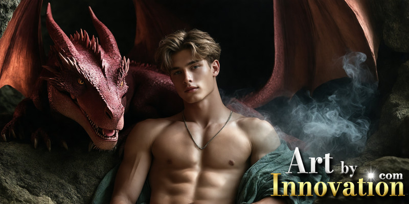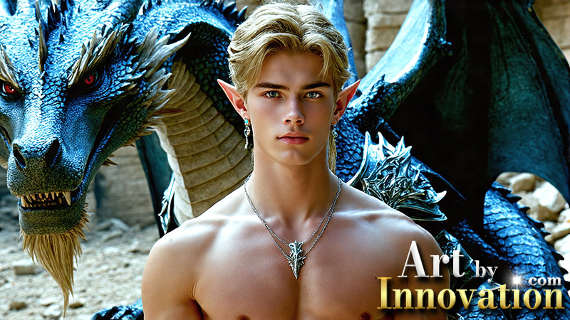The Dragon Prince - A very attractive shirtless young male prince,with his dragon.