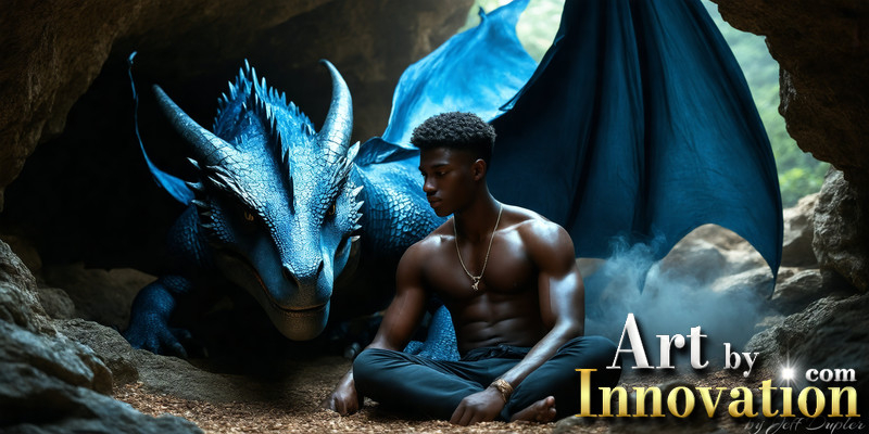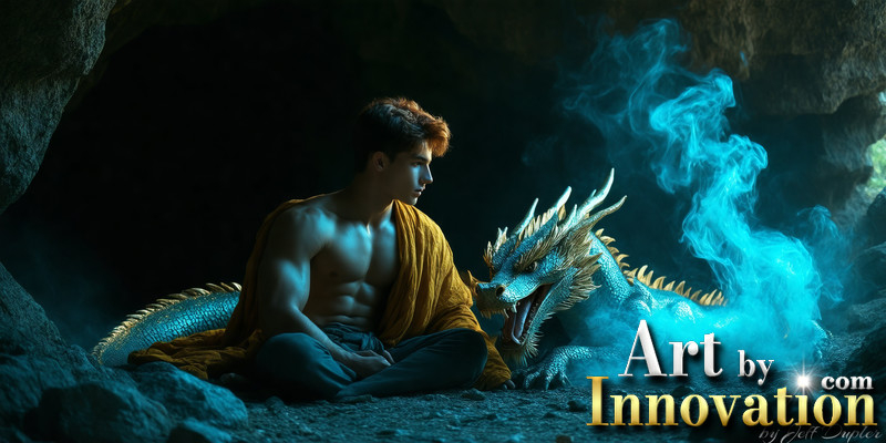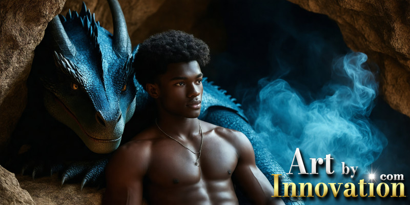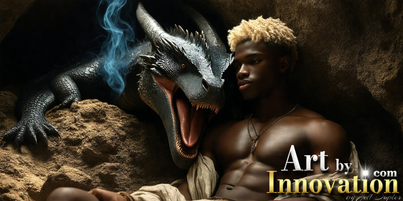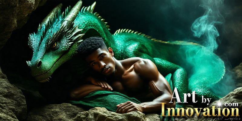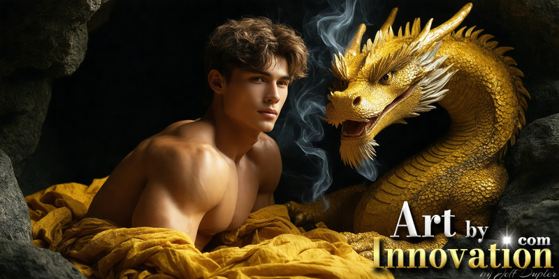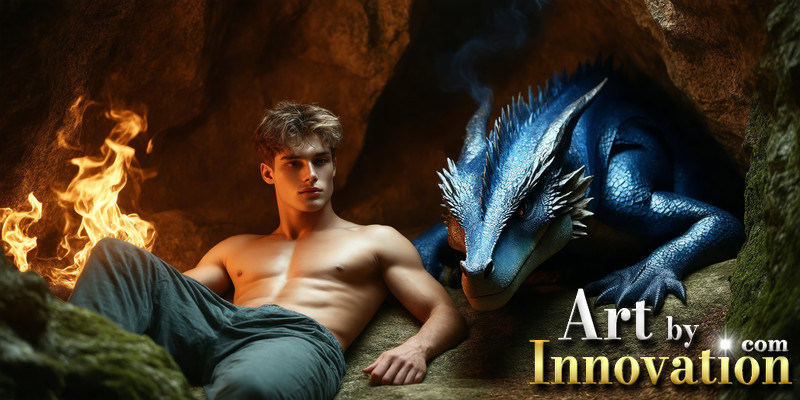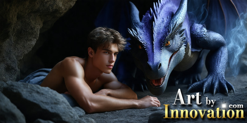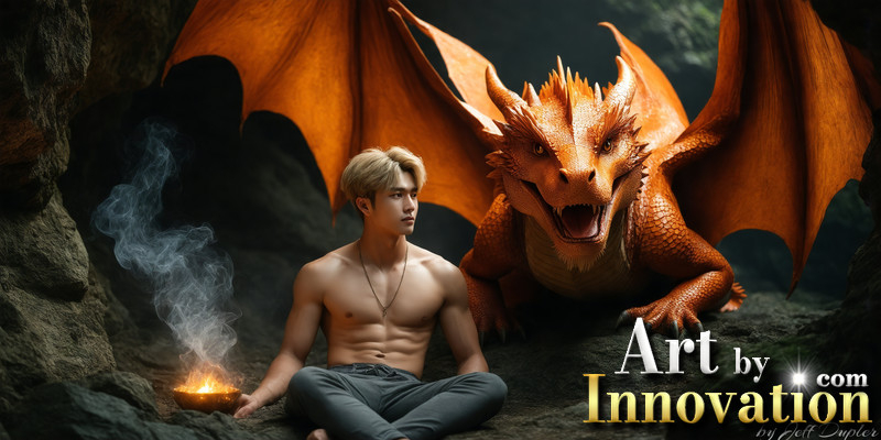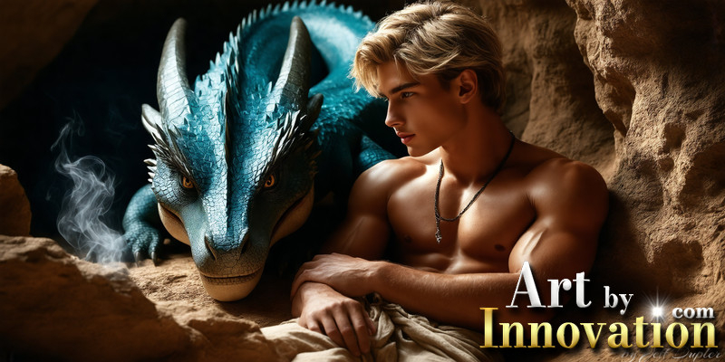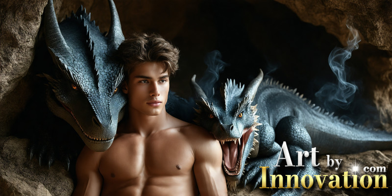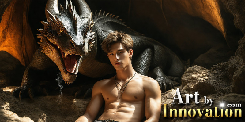The Dragon Prince - A very attractive shirtless young male prince,with his dragon.