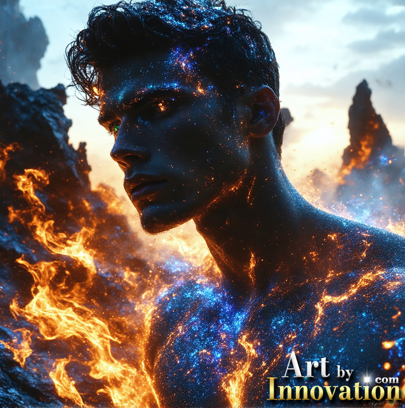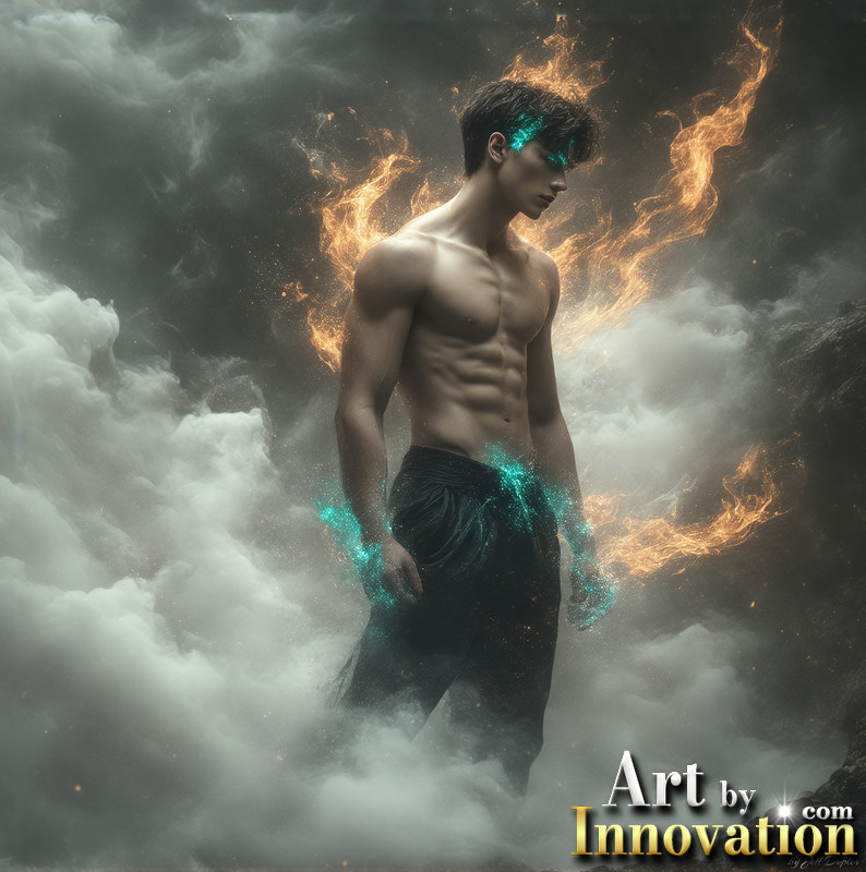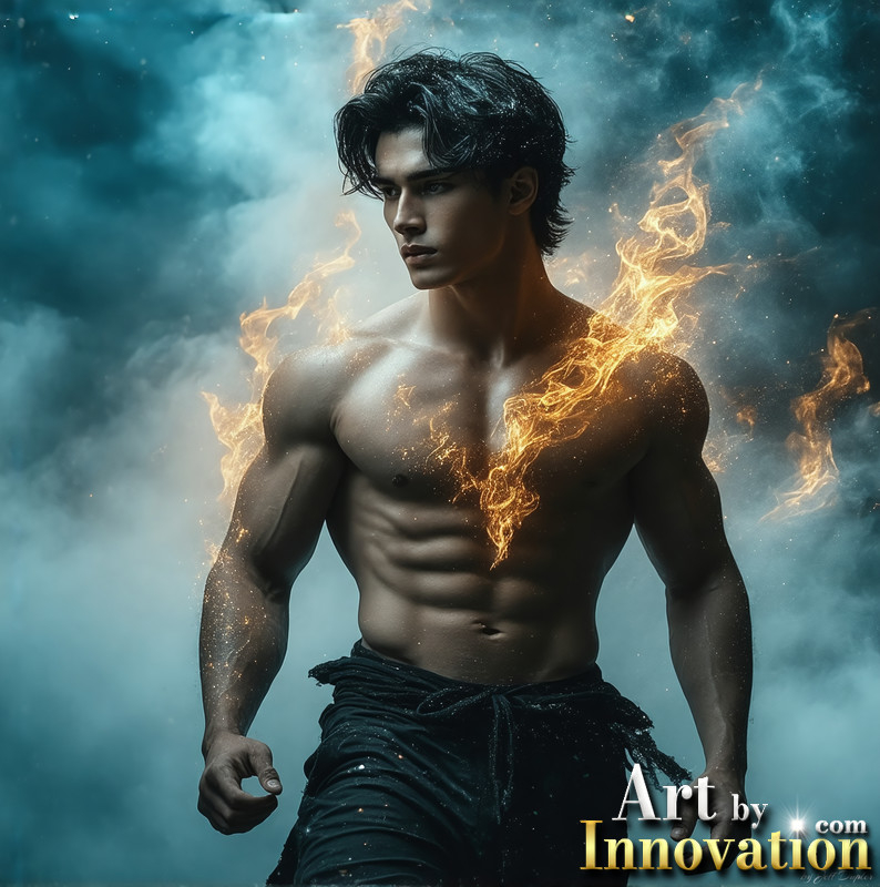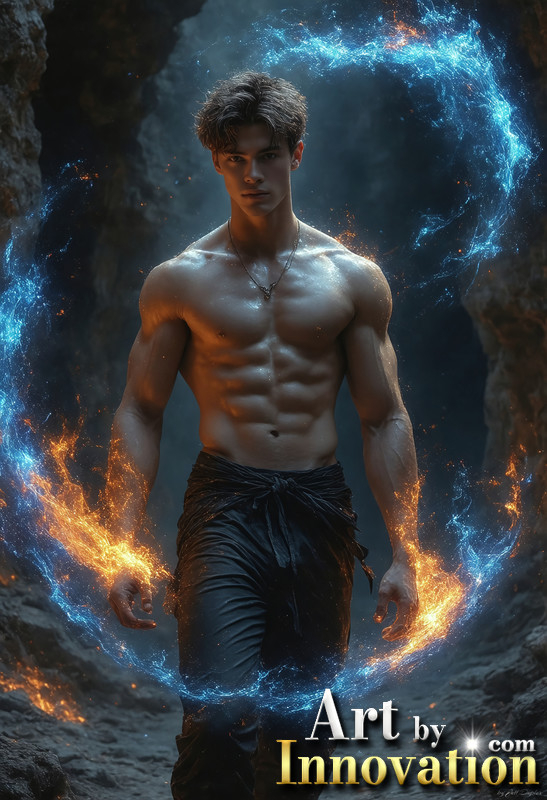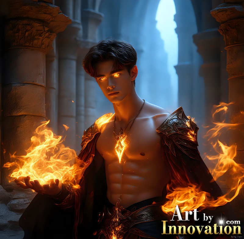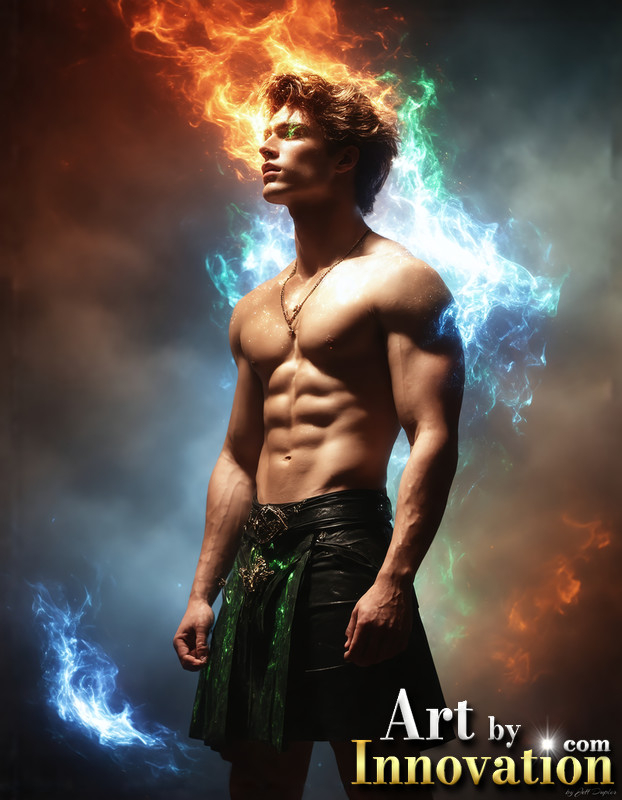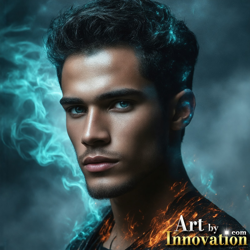 Elemental Mages,handsome men,fantasy,and magic,brought to life through the magic of AI