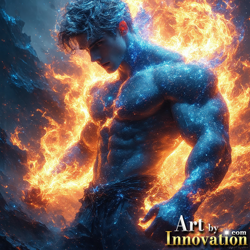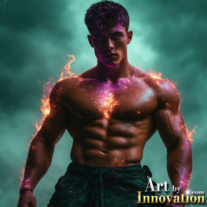 Elemental Mages,handsome men,fantasy,and magic,brought to life through the magic of AI