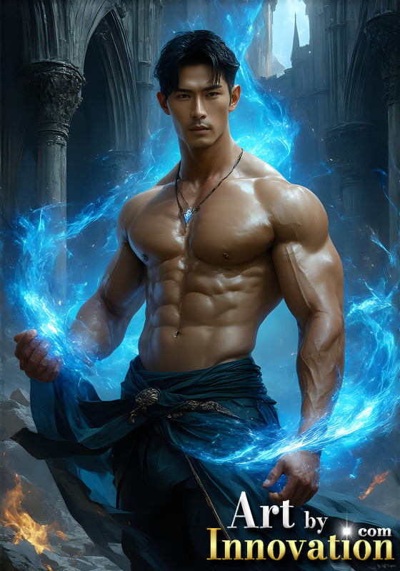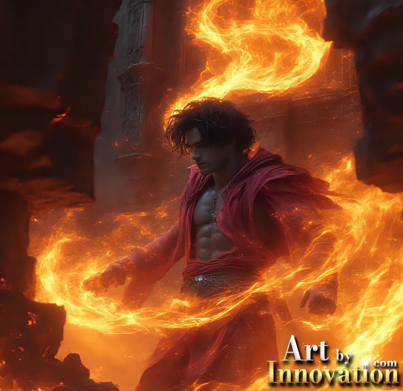 Elemental Mages,handsome men,fantasy,and magic,brought to life through the magic of AI