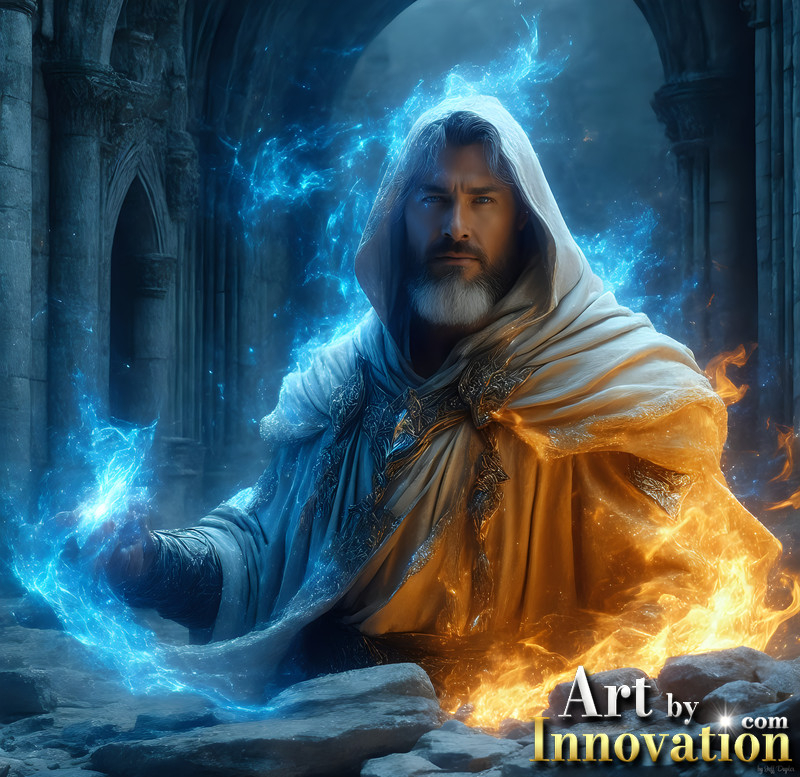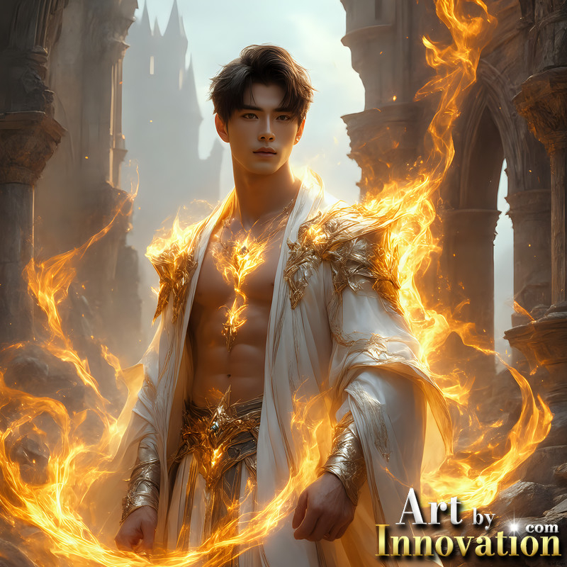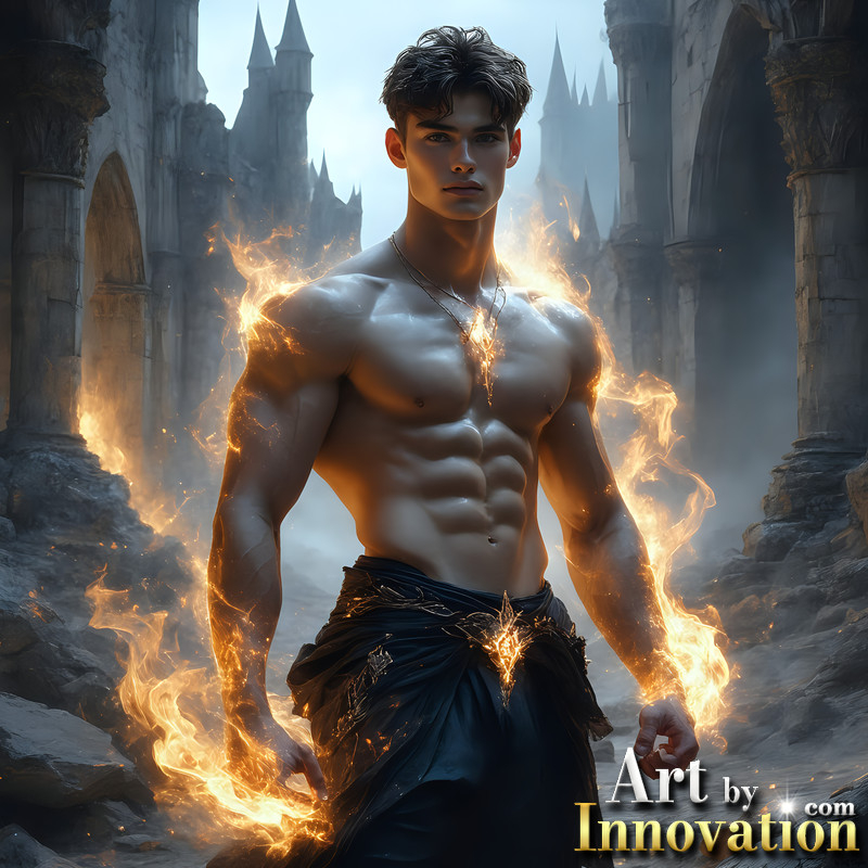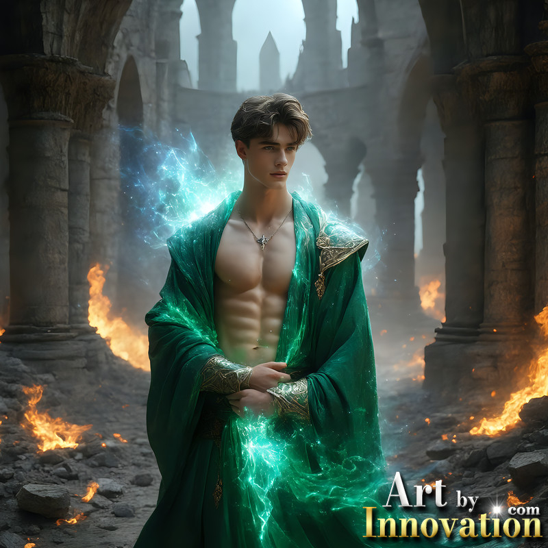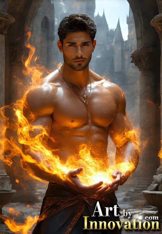 Elemental Mages,handsome men,fantasy,and magic,brought to life through the magic of AI