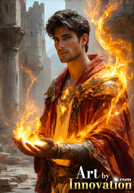 Elemental Mages,handsome men,fantasy,and magic,brought to life through the magic of AI