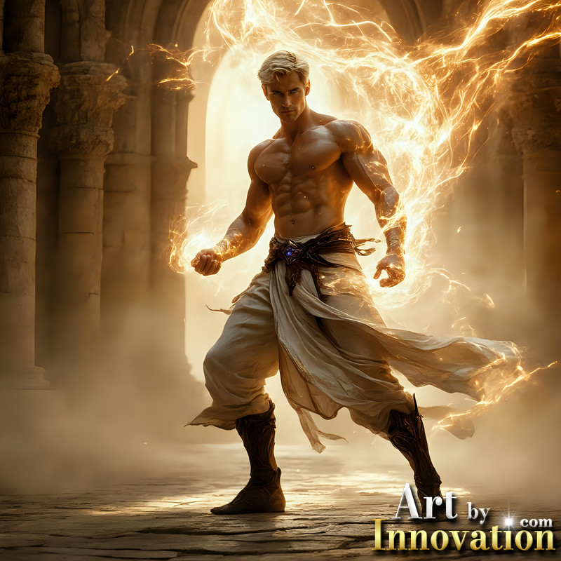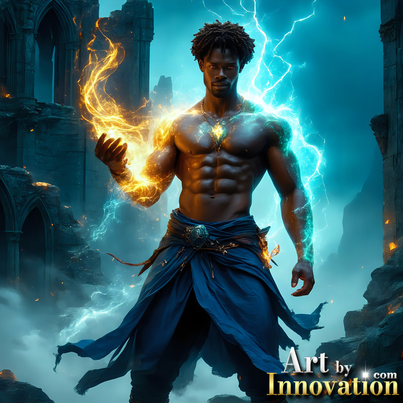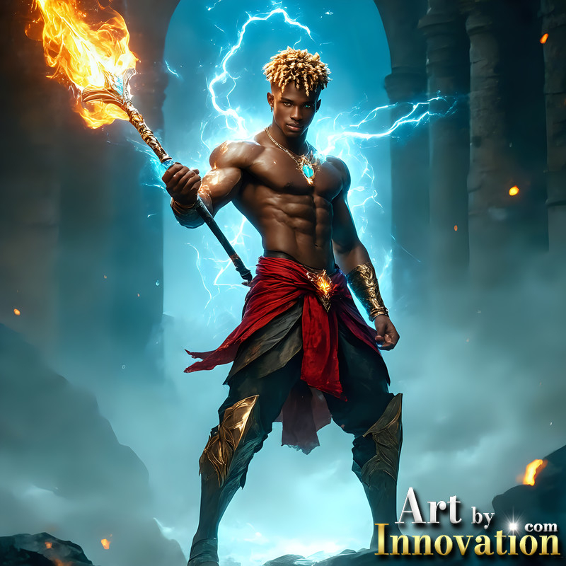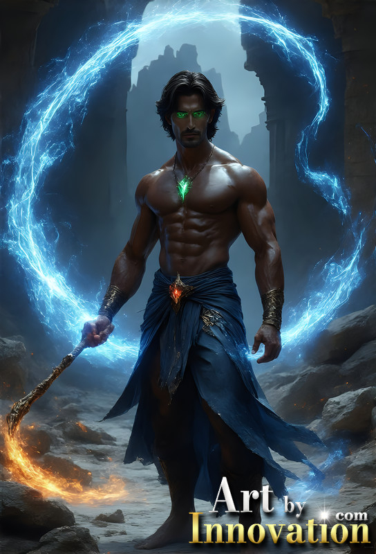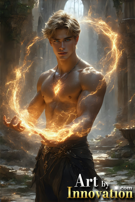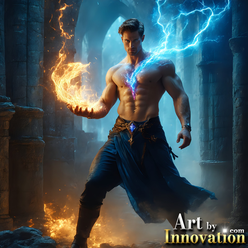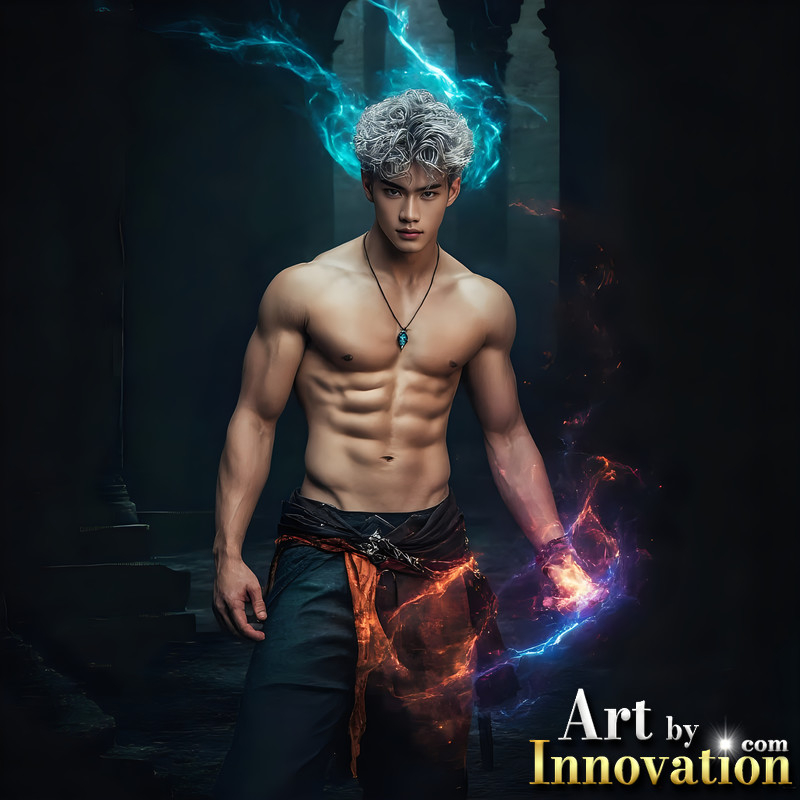 Elemental Mages,handsome men,fantasy,and magic,brought to life through the magic of AI