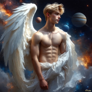 The Beautiful Young Men of the Golden City, is a collection of AI generated images of sexy, glamorous, handsome guys in the heavens. In this fantasy photograph of a young men in their 20’s, on a balcony, overlooking a large golden city in the heavens. Generated to be as realistic as possible, in this this fantasy setting, with todays technology. Wearing jeans, an unbuttoned, vibrant, long-sleeve, button down shirt. The subject is enjoying a beautiful day outdoors. The mystical, galactic landscape, and the vibrant cosmic canopies, every detail, from the texture of the clouds, to the magnificent, majestic gothic architecture of the golden city, is crafted to create an atmosphere of reverence and divine glory. With a breathtaking scene of Salar de Uyuni at sunset, offering warm golden hour lighting. The heavenly landscape evokes a sense of freedom and tranquility, that is expresses through his facial features and smile, as day turns to night. The heavenly landscape evokes a sense of mysterious black space and light, with a vast galaxy that almost covers the image, the stars and constellations sparkle bright, in dark blue sky. On occasion the earth can be seen floating in the sky.