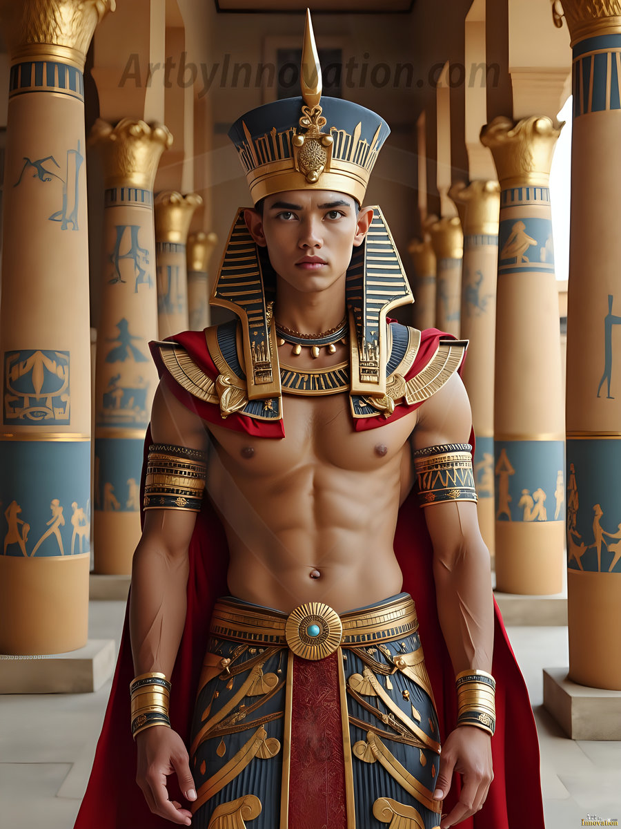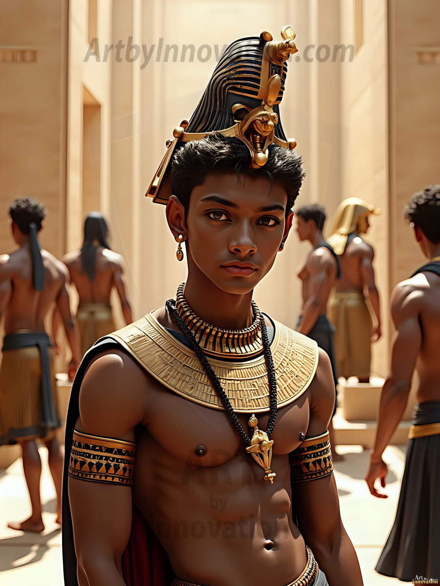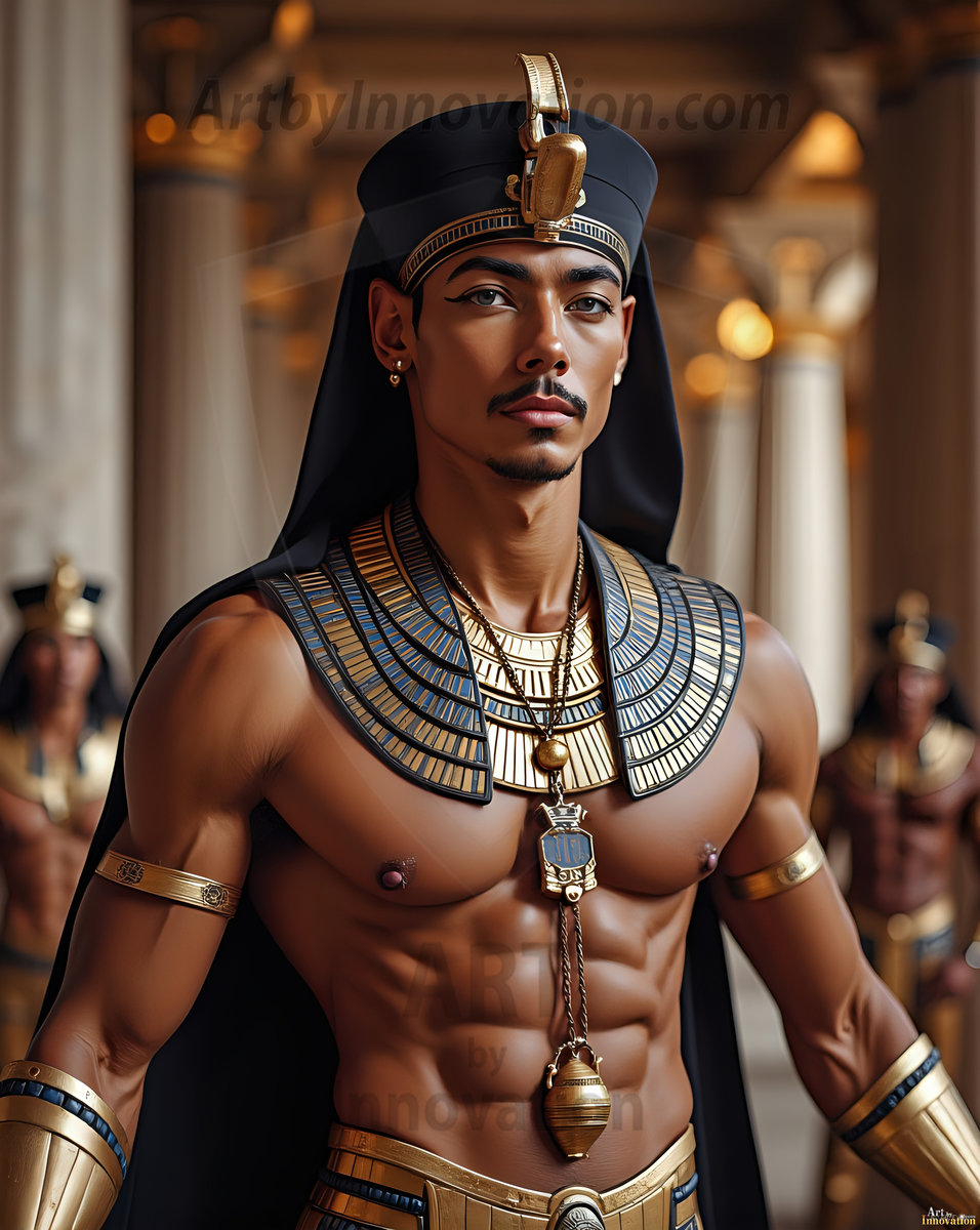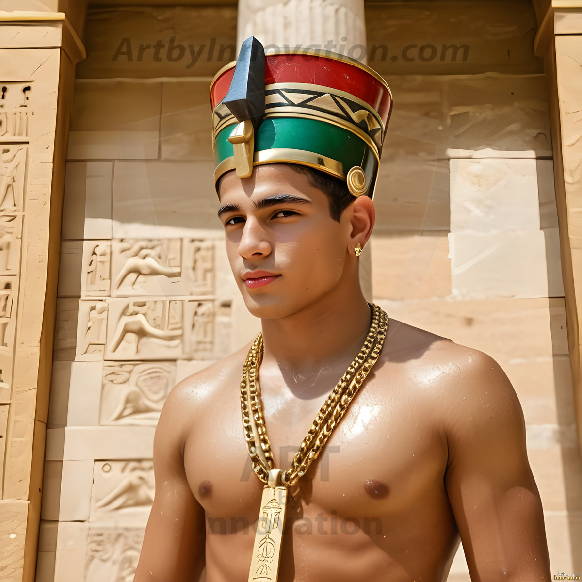 A stunning reimagining of the Boy Pharaoh — King Tutankhamun, one of ancient Egypt’s most iconic rulers, brought to vivid life through AI. This collection features handsome, powerful portrayals of the young king adorned in authentic ancient Egyptian royal regalia — golden crowns, ornate collars, and kohl-lined eyes — set against breathtaking scenes of pyramids, temple halls, and the sun-baked banks of the Nile. Part history, part fantasy, entirely extraordinary. Created using Flux.1 and ComfyUI by © Jeff Dupler | Art by Innovation | https://www.artbyinnovation.com