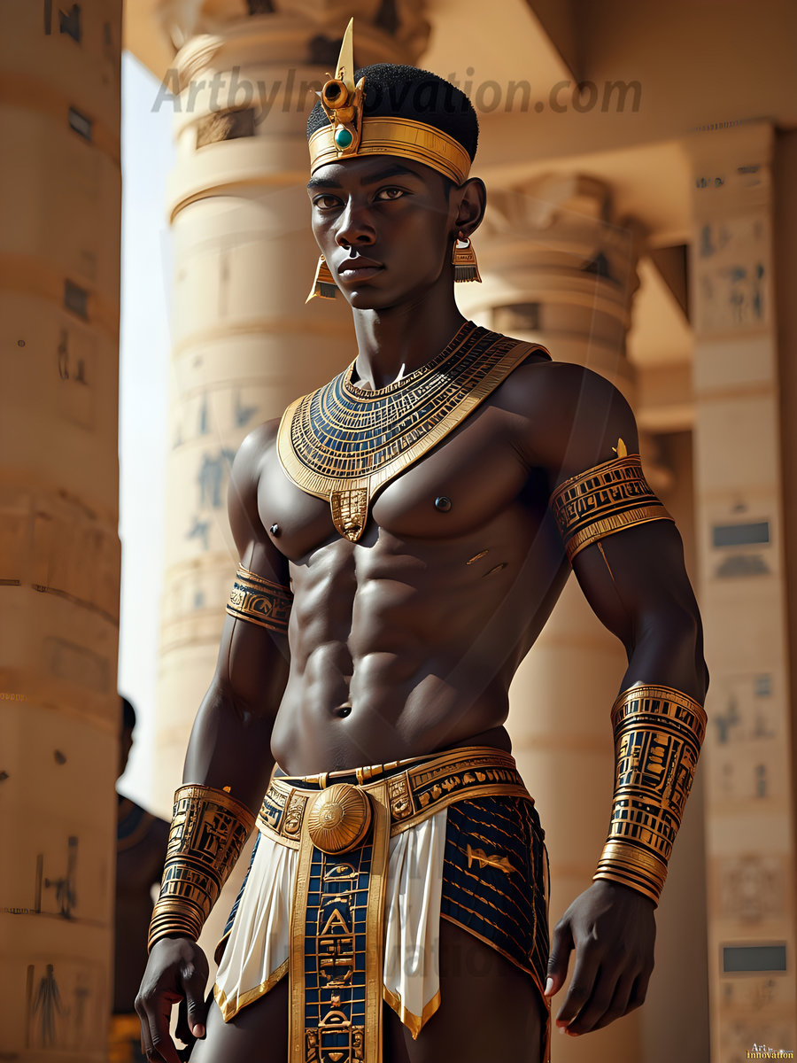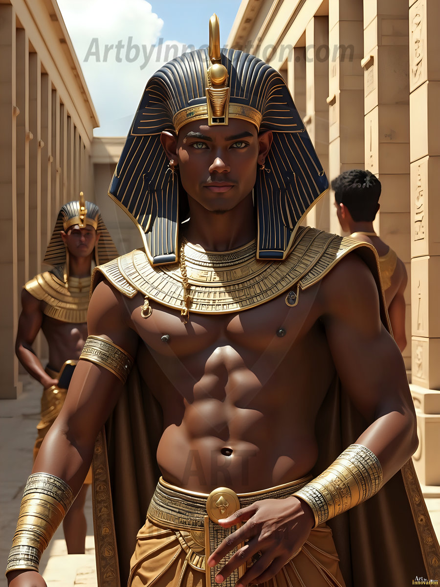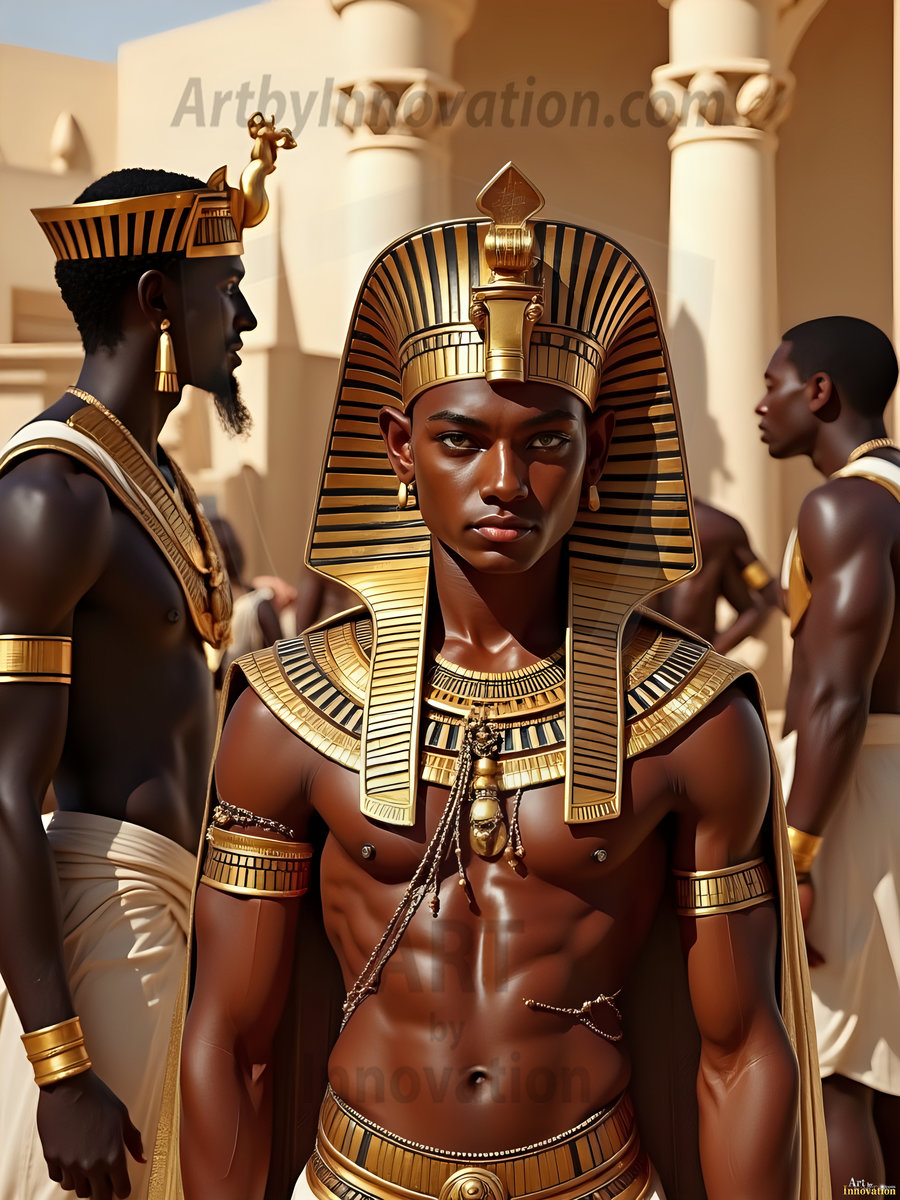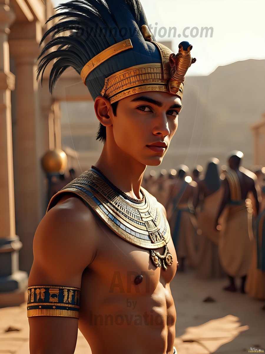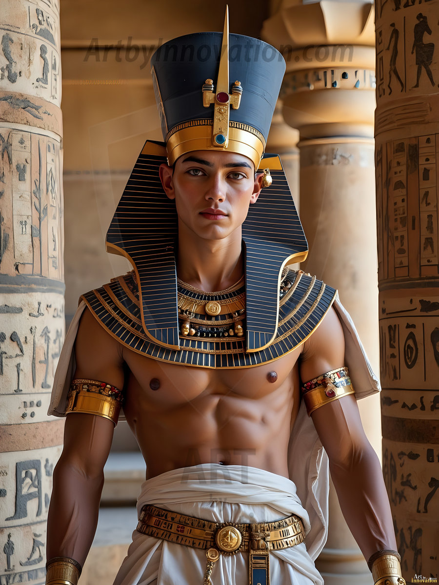 A stunning reimagining of the Boy Pharaoh — King Tutankhamun, one of ancient Egypt’s most iconic rulers, brought to vivid life through AI. This collection features handsome, powerful portrayals of the young king adorned in authentic ancient Egyptian royal regalia — golden crowns, ornate collars, and kohl-lined eyes — set against breathtaking scenes of pyramids, temple halls, and the sun-baked banks of the Nile. Part history, part fantasy, entirely extraordinary. Created using Flux.1 and ComfyUI by © Jeff Dupler | Art by Innovation | https://www.artbyinnovation.com
