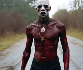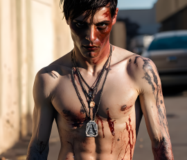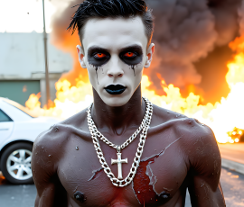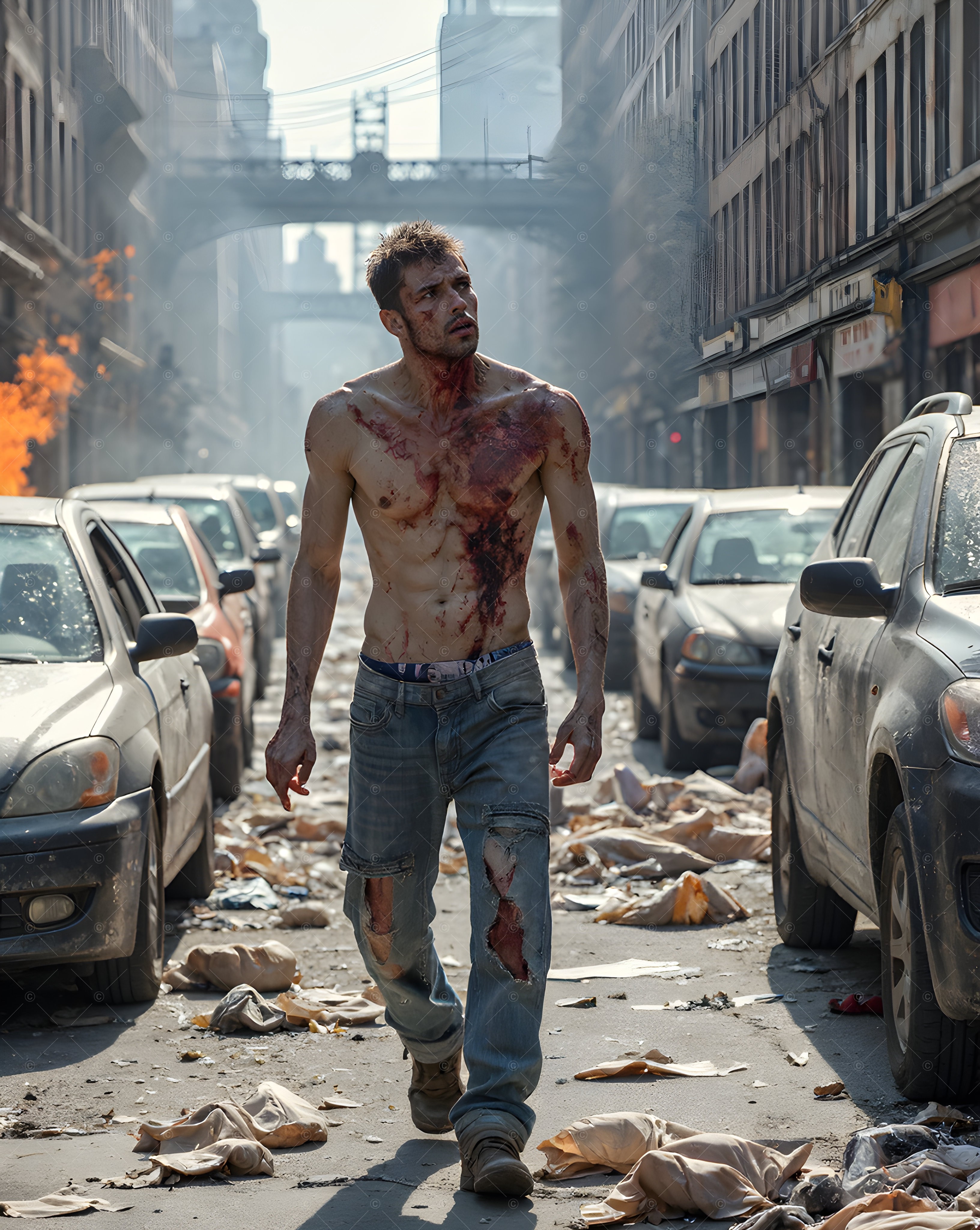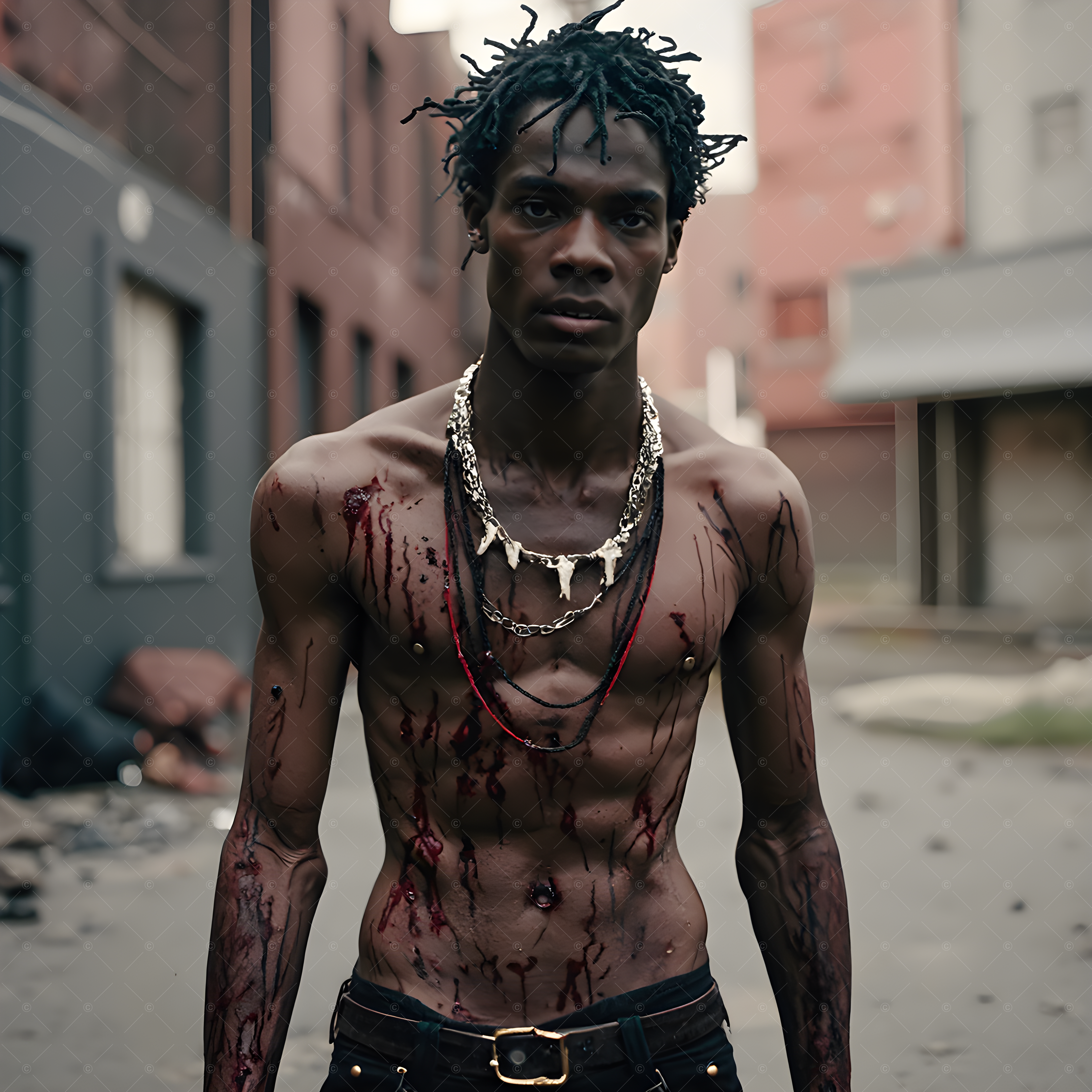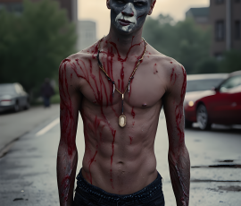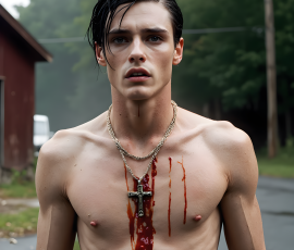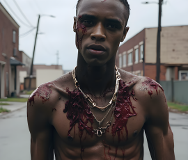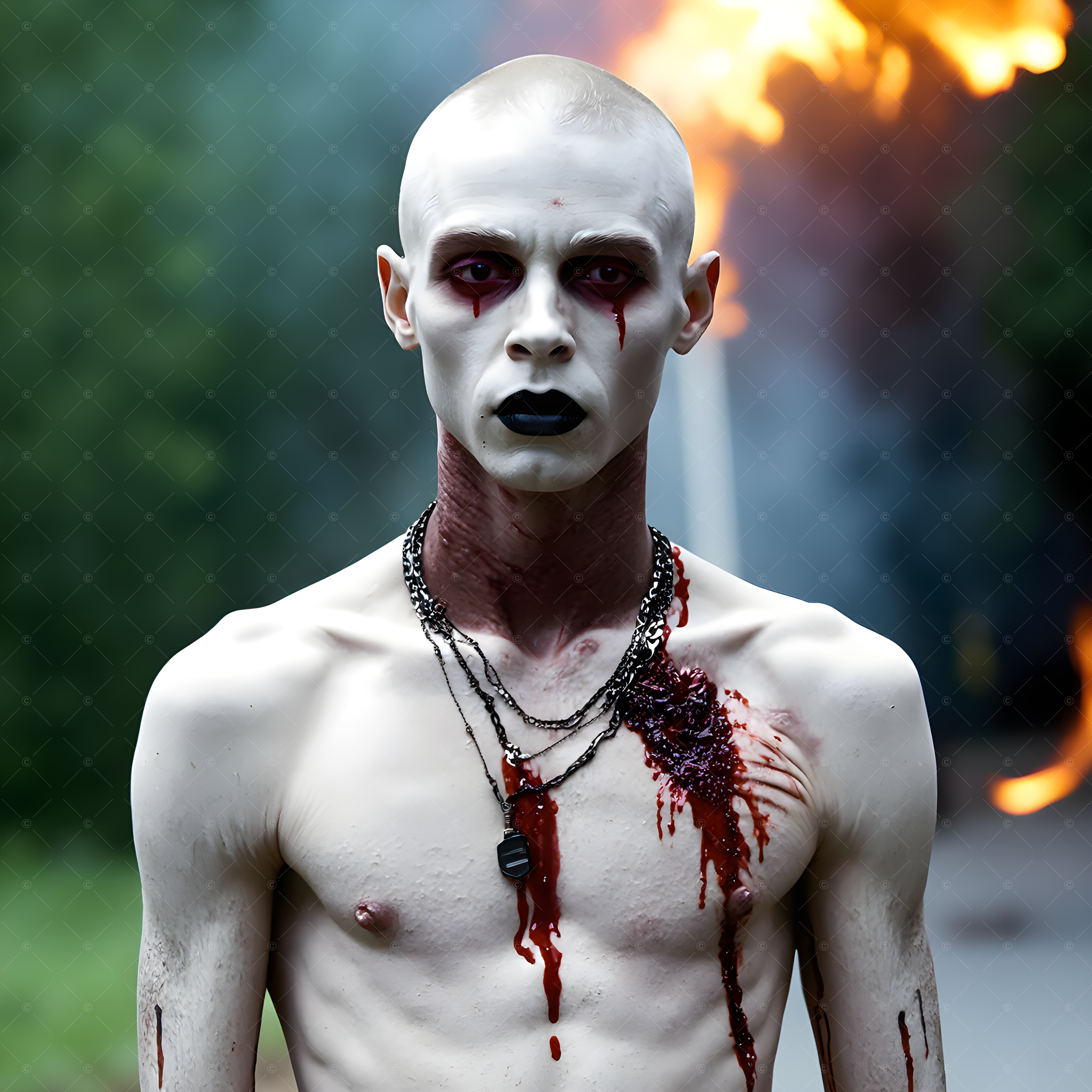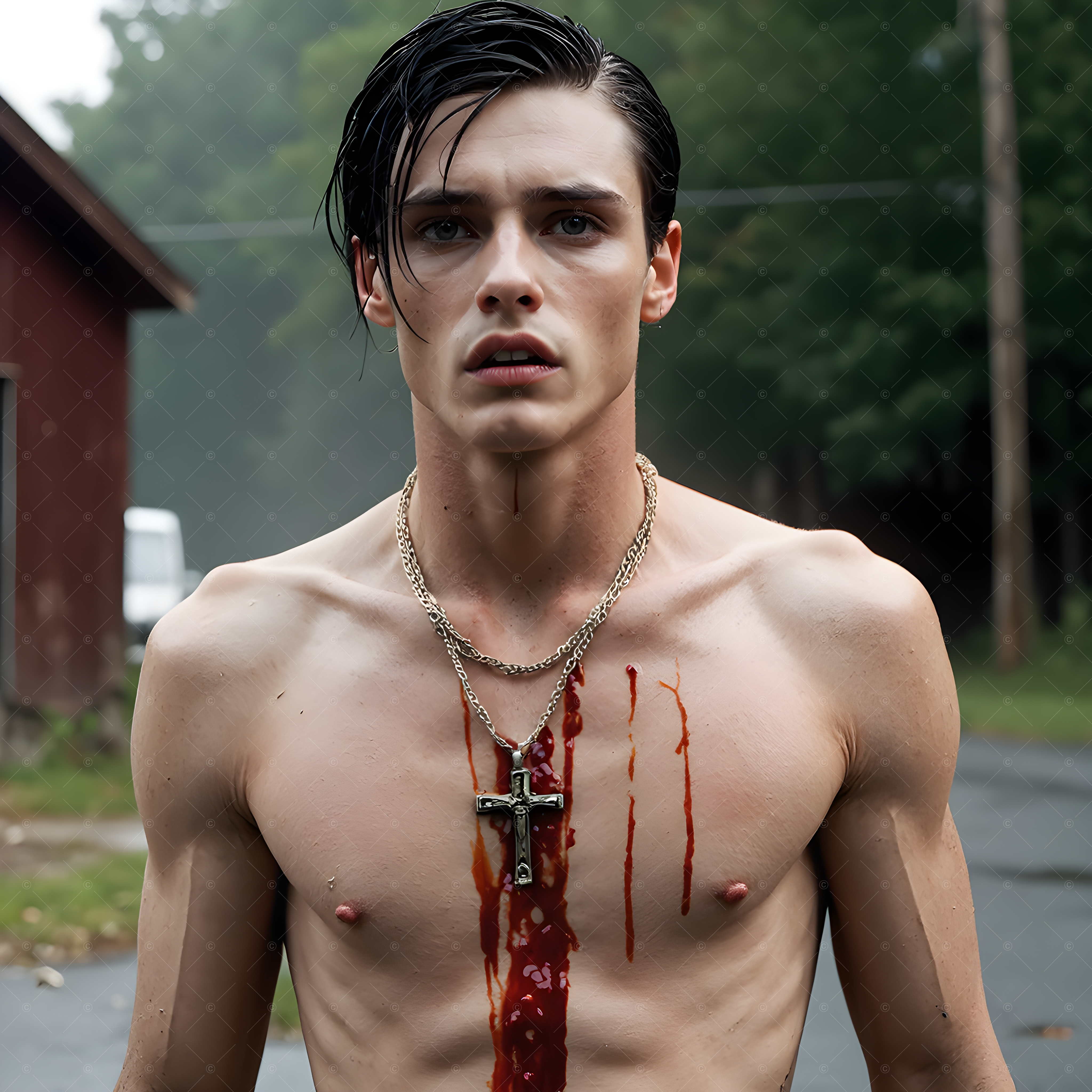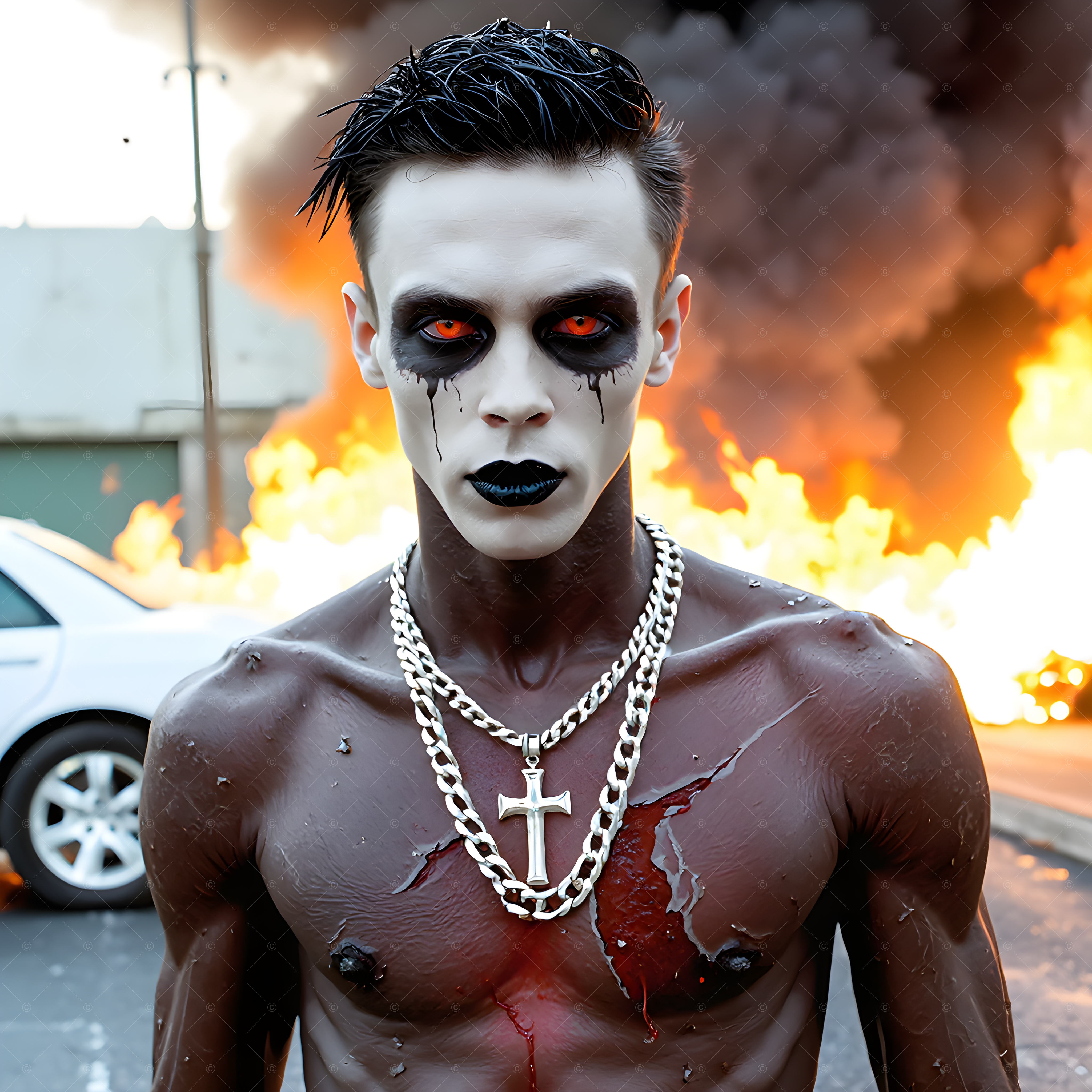 Twinkapocalypse, When Young Male Zombie Twinks, Attack. It's a zombie apocalypse, where young, handsome, freshly turned zombies, still handsome, and even sexy, wonder the city streets, looking for brains to eat. There are cars on fire, trash everywhere, chaos is in the amidst. A young man, covered with blood, dirty, with messy hair, with pale grey skin, dark circles around his eyes, and black lips, walking down a main city street. In this post-apocalyptic city, doing the classic, zombie walk, his head slightly tilted, mouth slightly opened, moaning, brains.